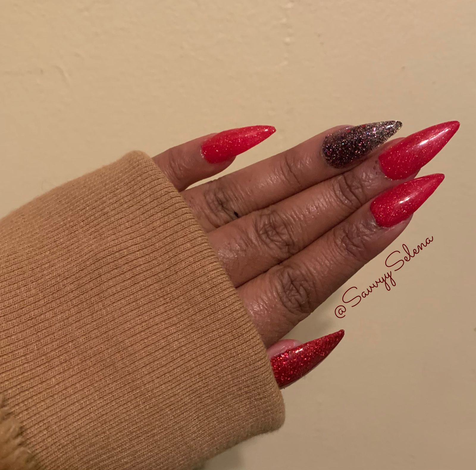 Red doesnt usually look good on me, generally makes me look pale but not this one... this is a perfect NY apple red with sparkles. The pictures are beautiful but in person it's even better! This is a perfect color for Valentines Day, Christmas or simply when you want to stand out.