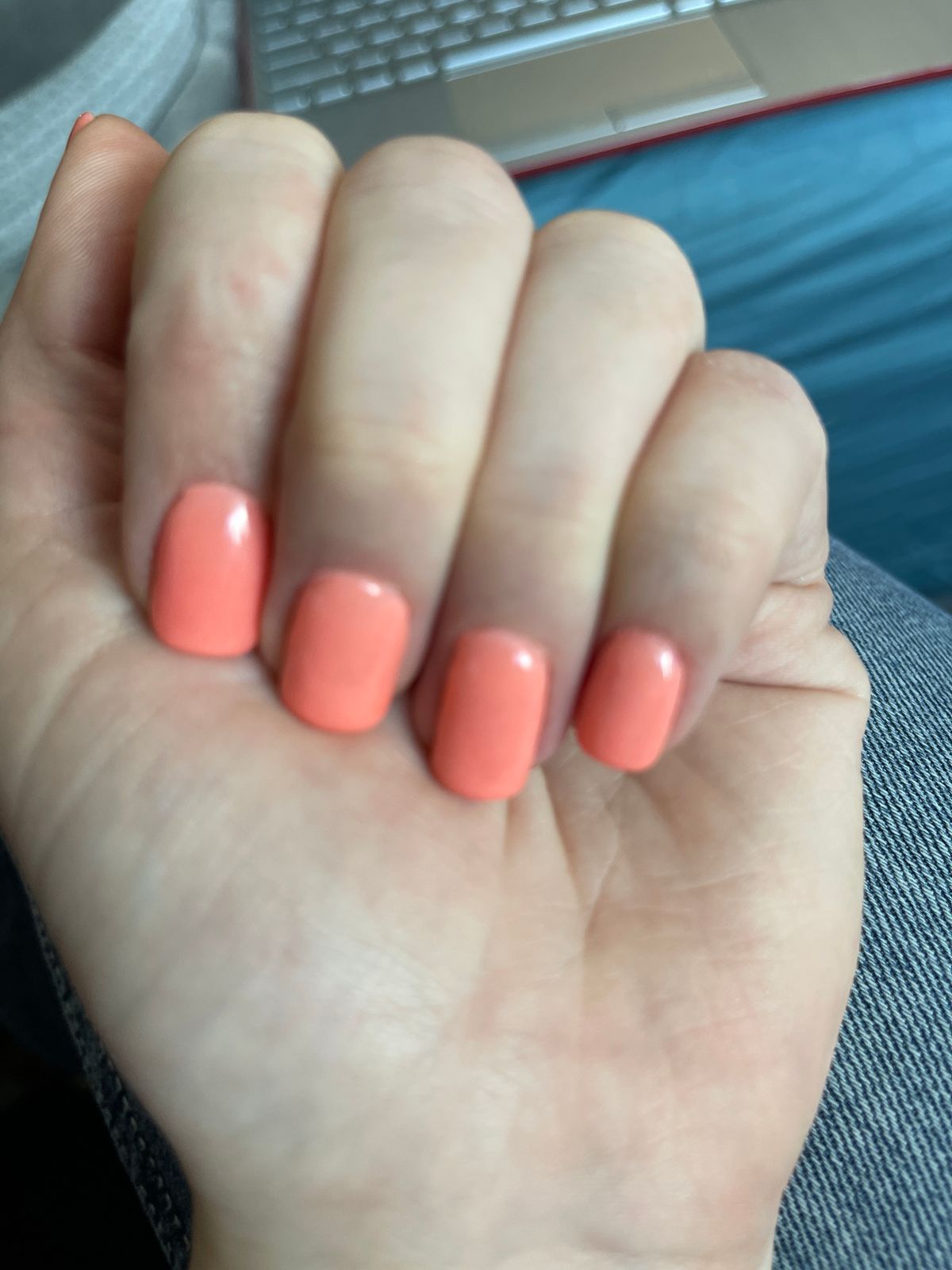 I love this color! I do my nails about every 2 weeks and I’ve bought tons of colors. So far this is my most worn color. I just love this pastel peach! I even noticed after doing my nails that they match my Birkenstocks color exactly as well as one of my go-to spring/summer handbags 😂