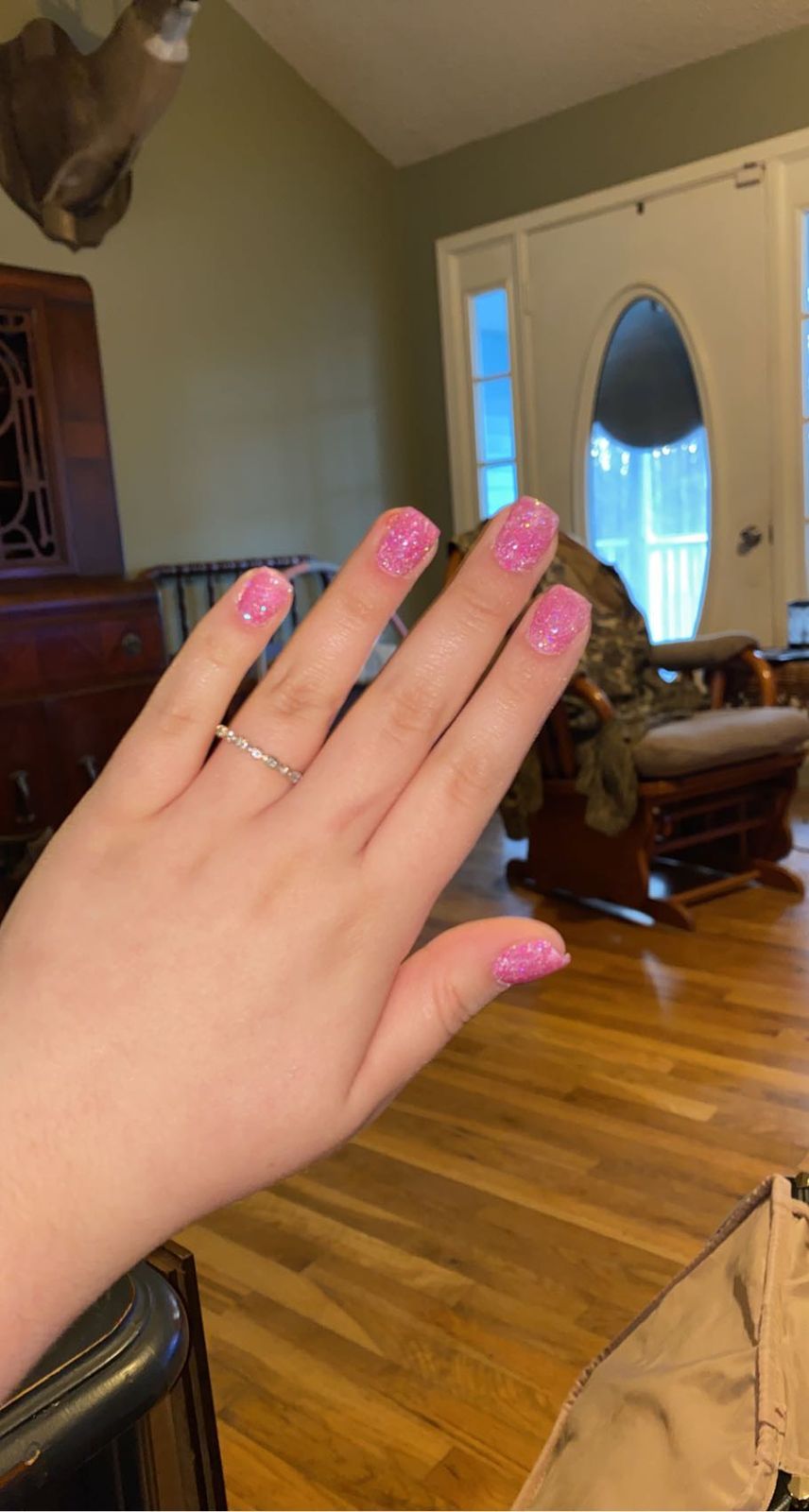 Pink loves me, pink loves me not…pink loves me! And we love pink, especially speckled with holographic silver glitter. Order I Pink You Anytime for bright glitter nails. It’s the pink that’ll love you back.