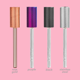 Kiara Sky's Large Barrel Fine bit is a coated carbide bit with an x-cut design. It's perfect for surface work such as smoothing product and prepping for top coat, as well as shortening acrylic and dip powder, backfill cutting and creating a sharp c-curve. The fine texture of this bit is perfect for removing lifted areas around the nail bed, without damaging it. This drill bit is designed to cut smoothly in both clockwise and counter-clockwise directions, making them perfect for right and left handed nail techs.