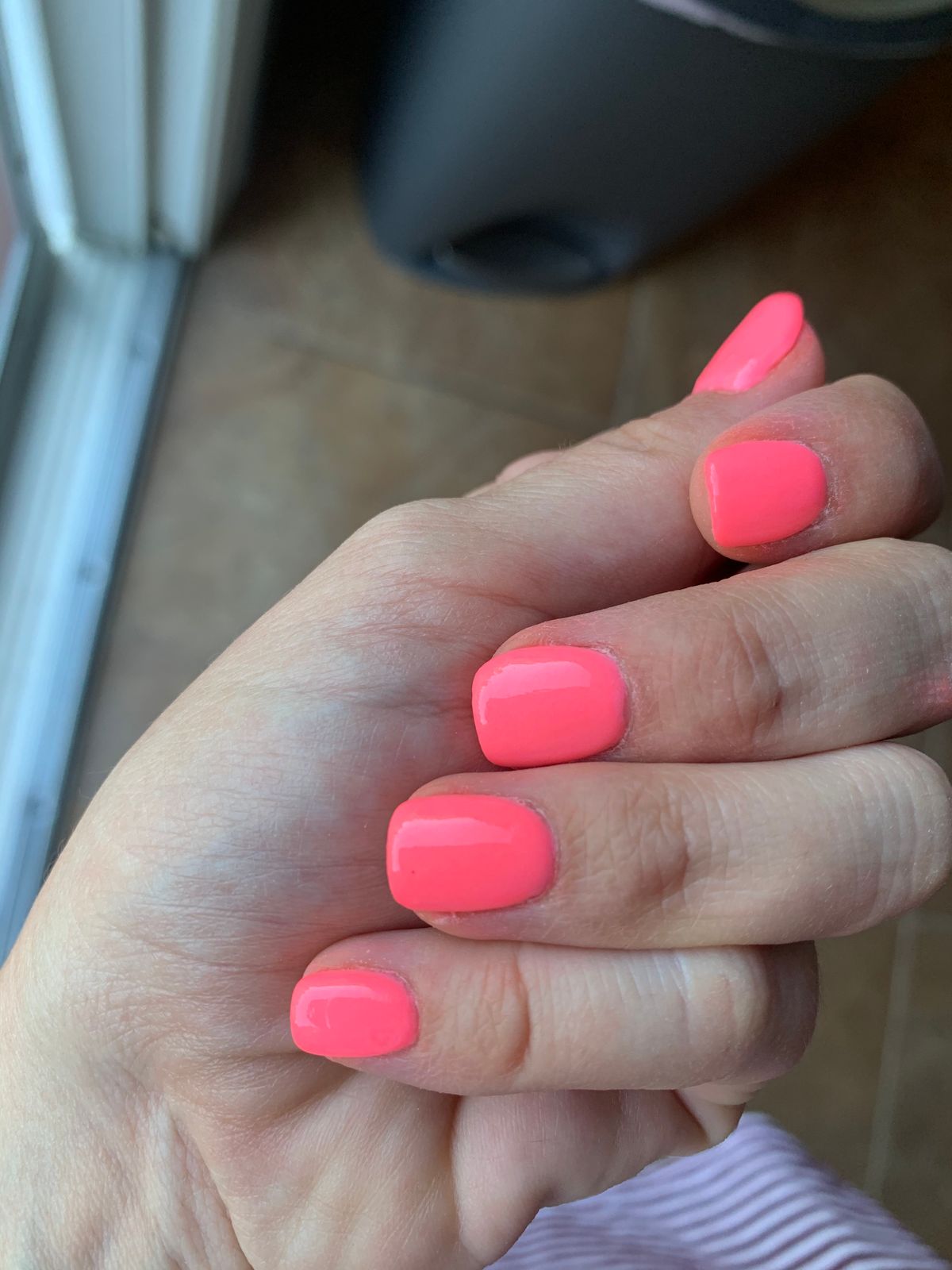 This is a softer neon orangey-pink color and it really pops on nails. It wasn’t exactly what I was expecting (not sure what I was expecting) but I LOVE it!!