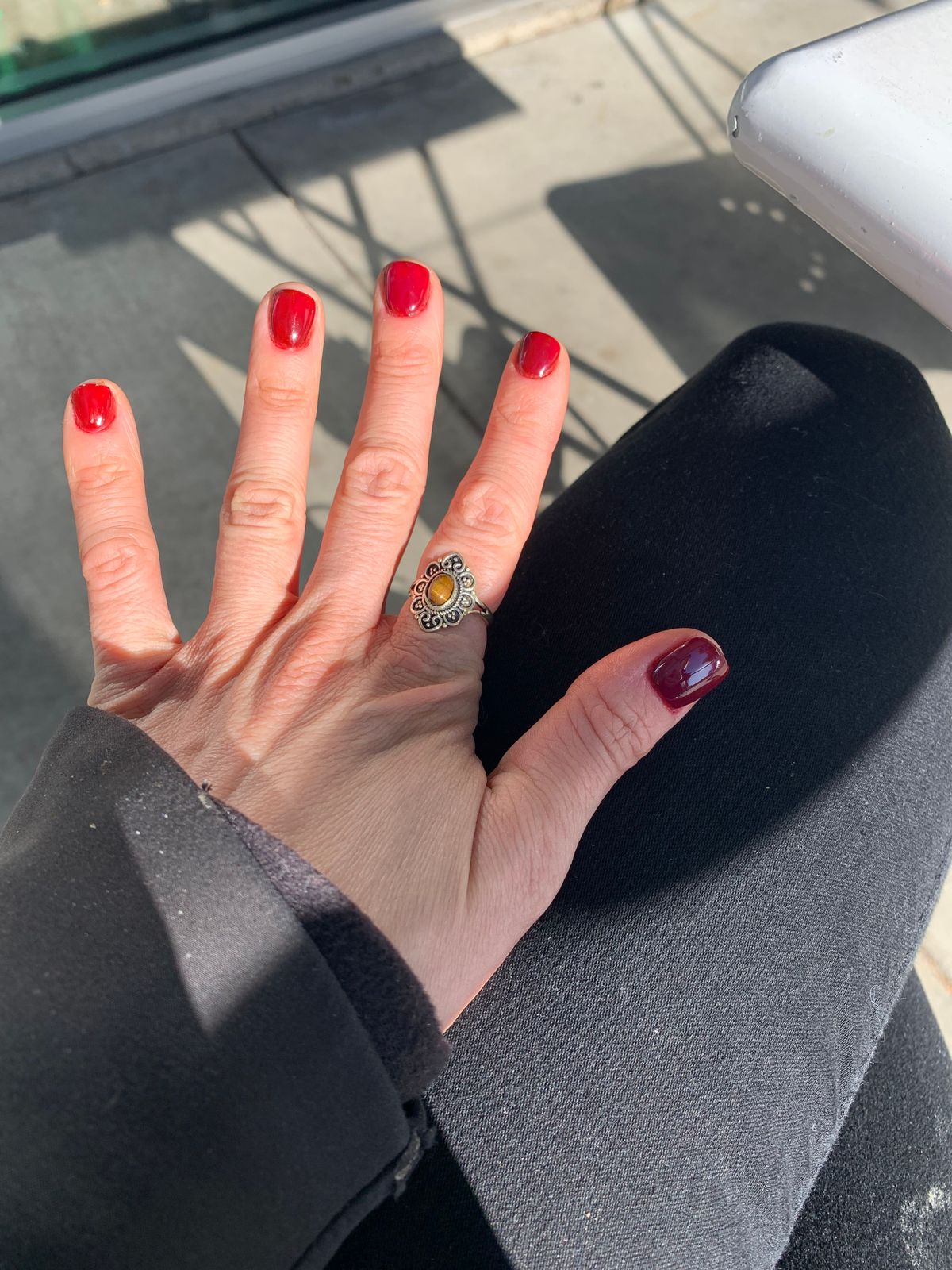 This is a pretty color, but it is definitely not brown. It is more of a medium red with berry undertones, not bright but not super dark either. I have looked at it in all different lights trying to even detect brown undertones and I just don't see it. Not a bad color, just not the one I expected based on the name "haute chocolate" and what i saw in the color swatch.