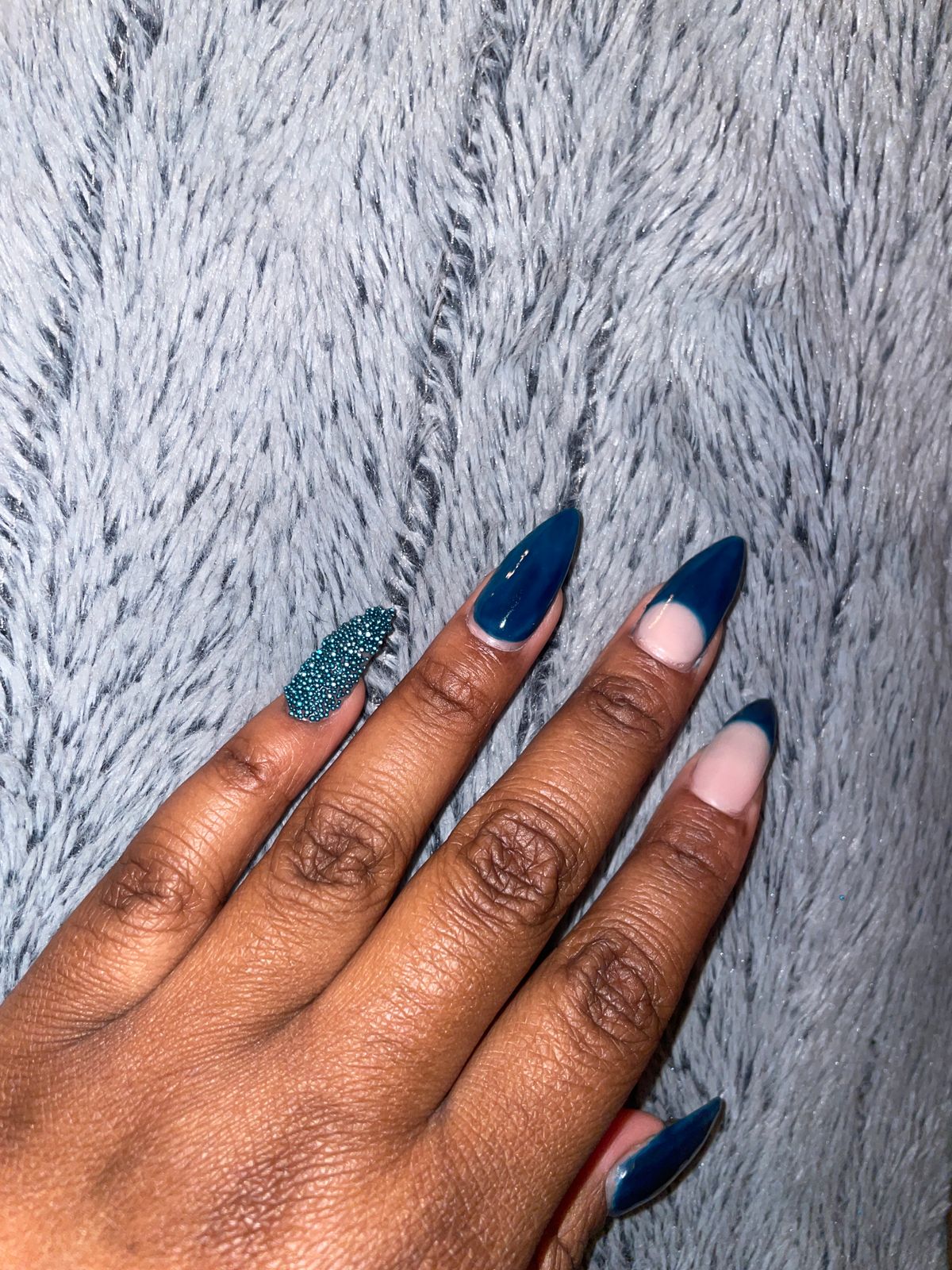 I bought this thinking it was kind of like a turquoise but it is definitely more like royal blue. I was surprised at how beautiful it ended up being, very happy with the color! I’ve had it on for 2 weeks, it’s pretty transparent so I did 2-3 coats, but so far no chipping or fading of the color like other gels I’ve used.