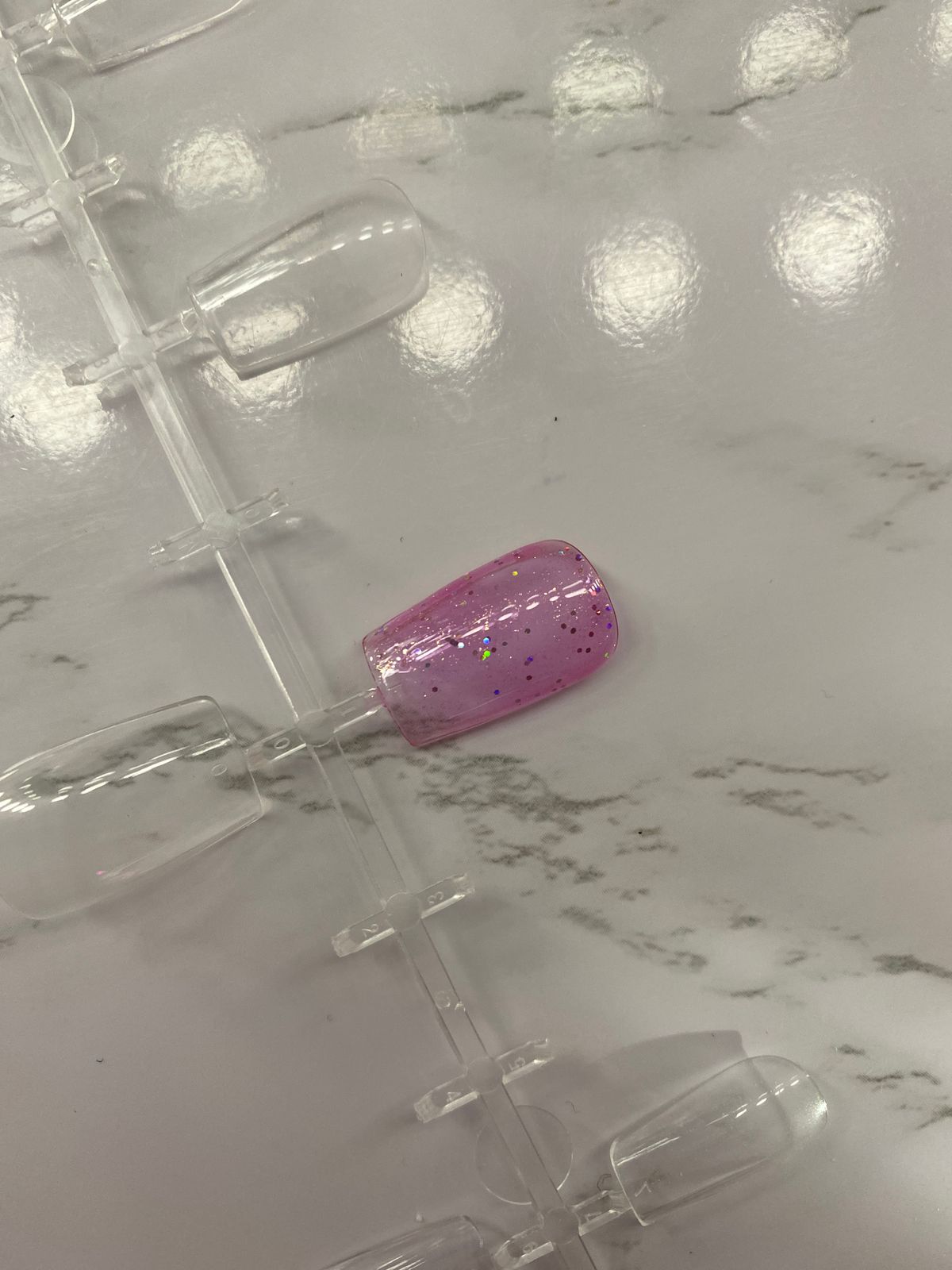 Give 'em the old razzle-dazzle with this showstopping shade! Silver and holo glitters pack this light pink shade with a star-studded finale that'll go down in history. Go on and crush the competition with this 'Triple Threat'!