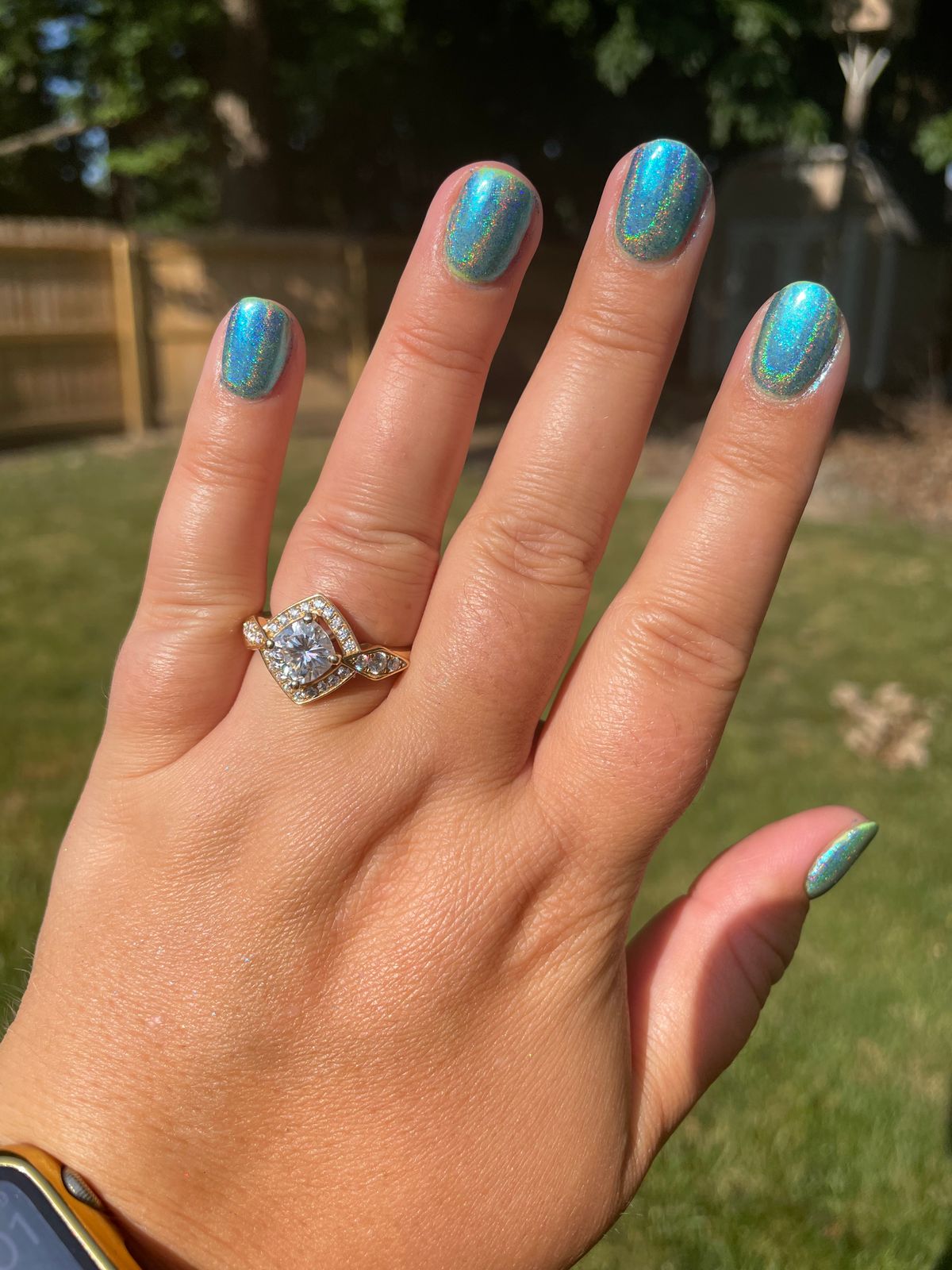 I’ve been into holo nails for years but I never realized you could do the rub-on powders over dip. It’s SO easy! My only issue after my first attempt is that it seems to chip off easily, so I’m gonna rough up the dip better next time and cure a little longer. Been getting so many compliments though! Can’t wait to try more rub-on powders.