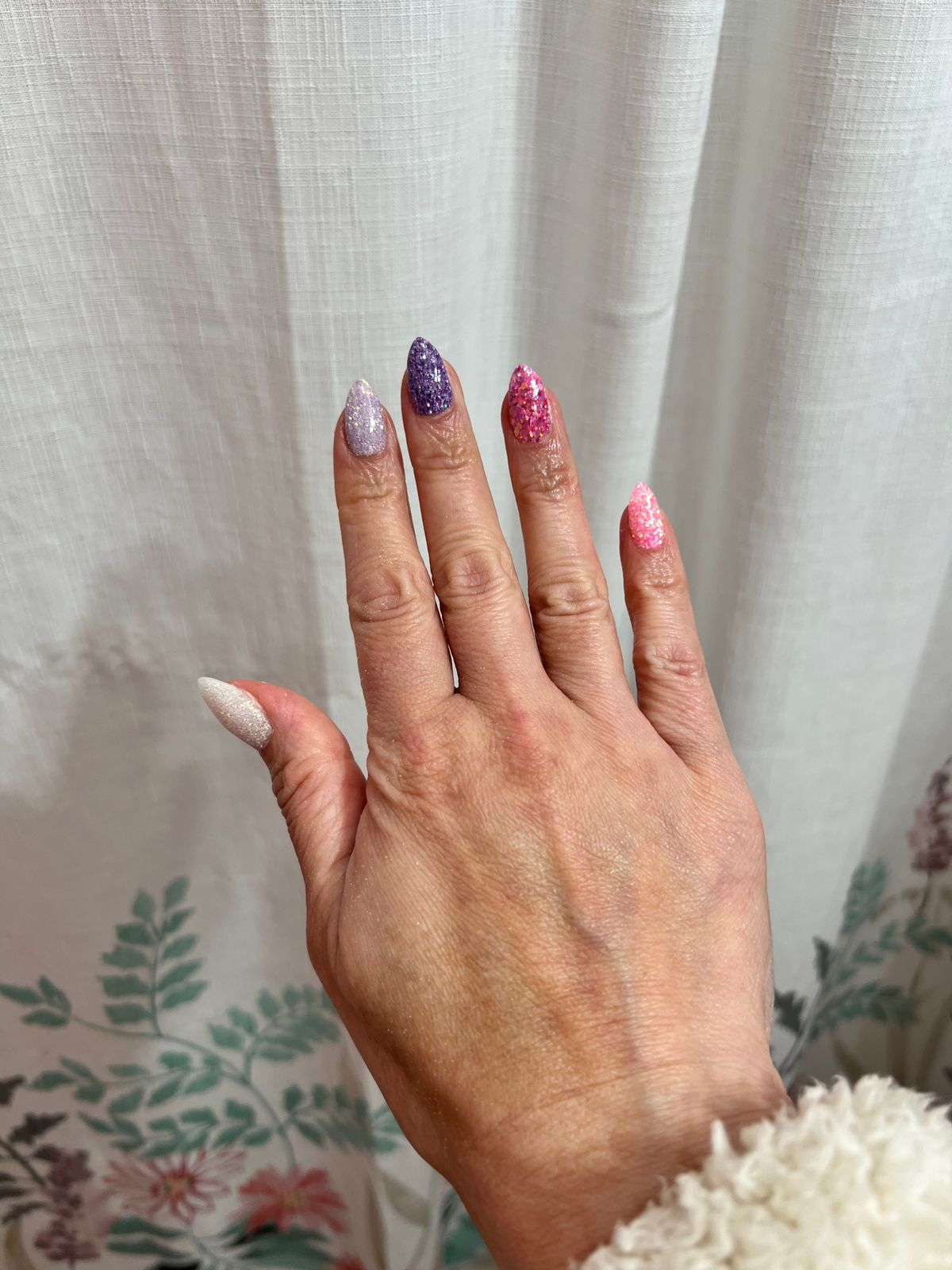 It’s cute. It will definitely be in my regular rotation of colors. On my full hand photos this color is on both middle fingers. This is two full dips covered in clear.