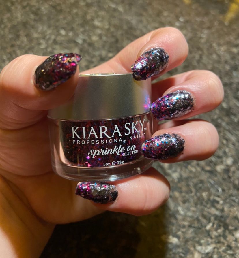 "Introducing Kiara Sky Nail’s NEW Sprinkle On Collection! Featuring 96 unique 3D glitters, so versatile and absolutely stunning! Mix with acrylic, gel polish, nail lacquer, dip powder, or simply Sprinkle On for the sparkle of your dreams! Each glitter is designed with a mix of shapes and sizes for a multi-dimensional finish! The combinations and possibilities are endless!"