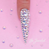 "Introducing Kiara Sky Nails Bling It On Collection! A dazzling collection featuring 12 ultra-sparkly rhinestones options to add a touch of glam to your next mani! These stones come in an assortment of sizes and are perfectly designed to take your nail art game to the next level. Use them on top of dip powder, acrylic, gel, or Gelly Tips!"