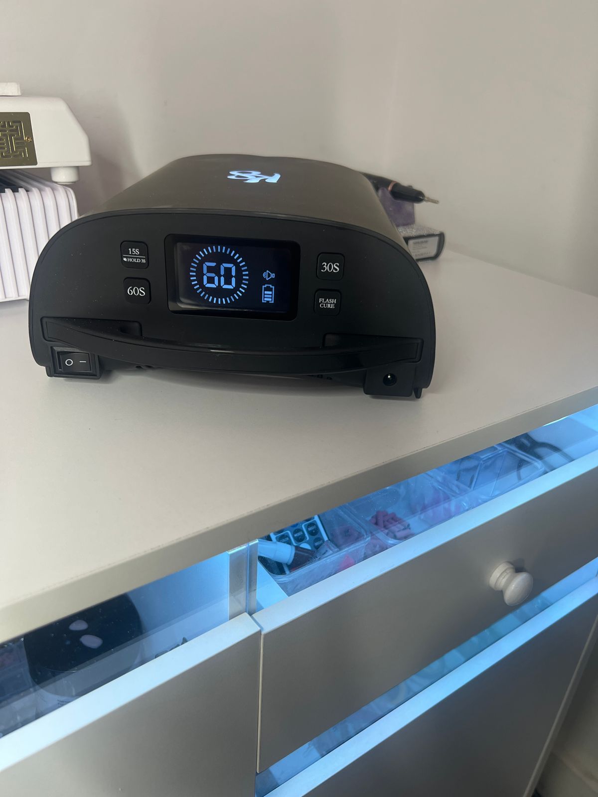 Let’s just say I did a chrome set the other day, and the thumb cured the black base fully!!!! I’m very happy about that and love the matte black finish. The timer buttons on the back are big, clear, and nicely designed.