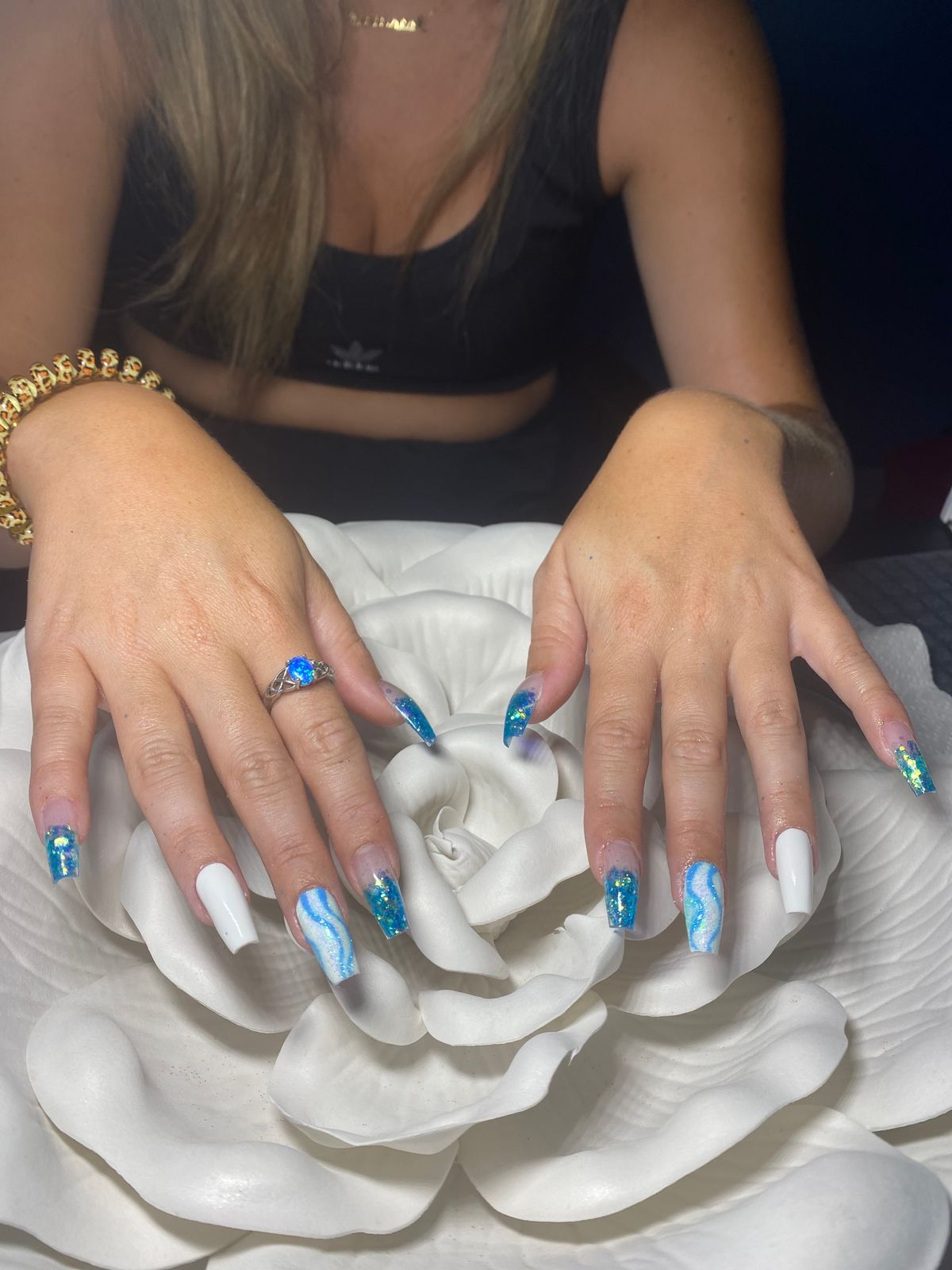 I see purple, I see blue, I see a duo-chrome shade perfect for you! This mix of aquamarine blue glitters and iridescent shimmers reflects a lavender hue for a gorgeous and dreamy blend!