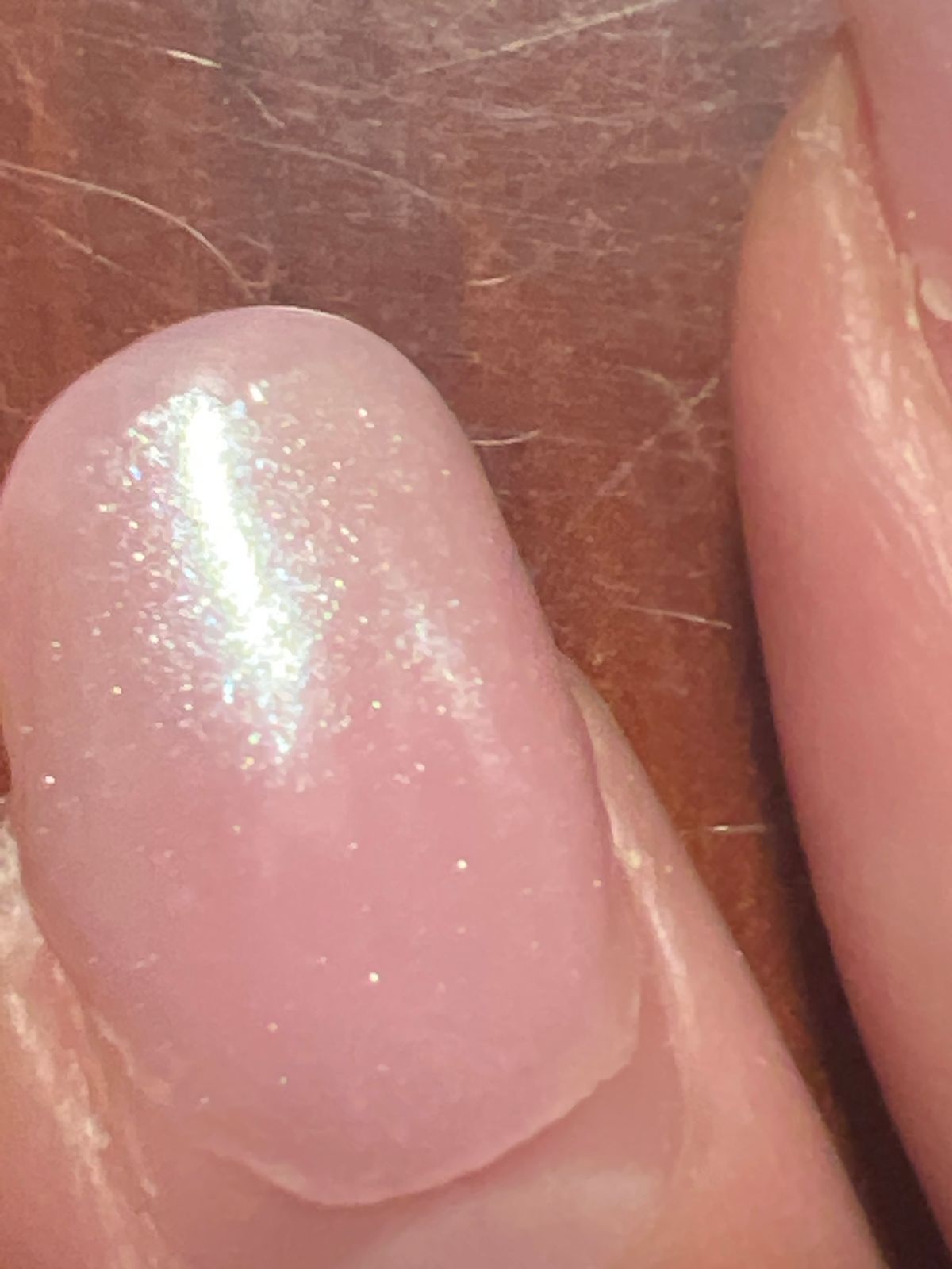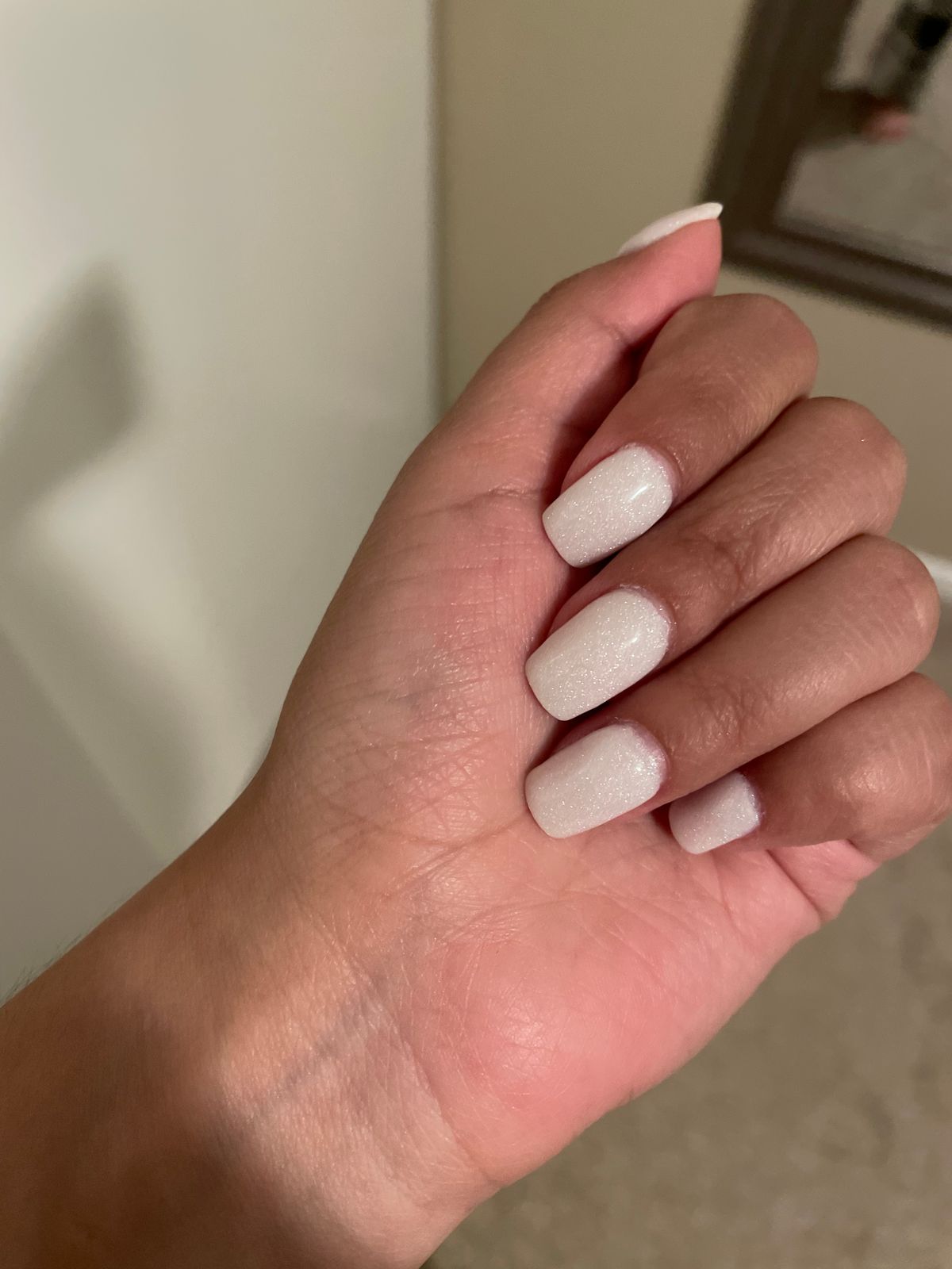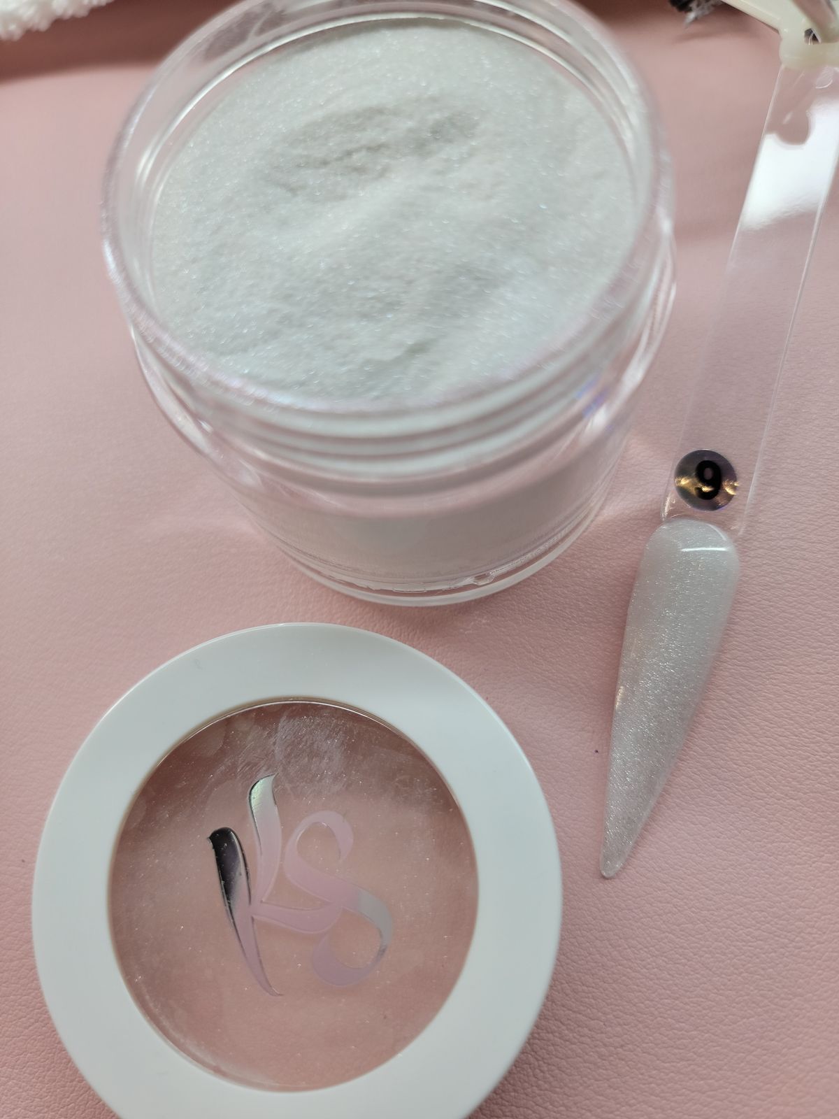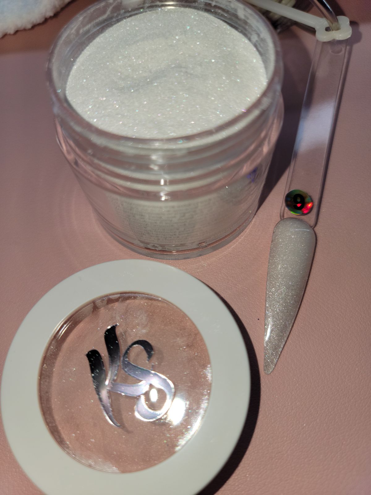 I've tried many sparkly white acrylics and this one is by far, my favorite. It's fine sparkles so it's not too much. I recommend this color for sure. The first picture is without flash, and the second is with flash.