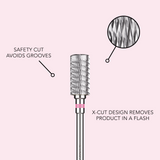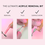 I’m not sure if I am the only one but it also causes a bit of a heat spike. I also use the corse typhoon bit to remove product and I find it does not do that. Other than the heat spike I love this bit.