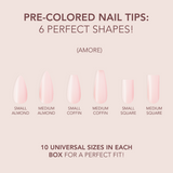 Whisper sweet notions of romance and tenderness with "Amore." This delicate baby pink shade effortlessly camouflages nail imperfections while giving you a soft and innocent finish reminiscent of first loves and gentle spring blooms. This perfectly romantic shade accentuates the beauty of French nail designs and nail art when chosen in any of our six distinguished shapes.