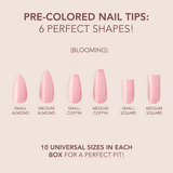 Introducing "Blooming," the quintessential Barbie pink that effortlessly conceals nail imperfections. This vibrant shade, available in six distinctive shapes, provides naturally beautiful coverage, serving as your go-to choice for classic Pink and White French nails.