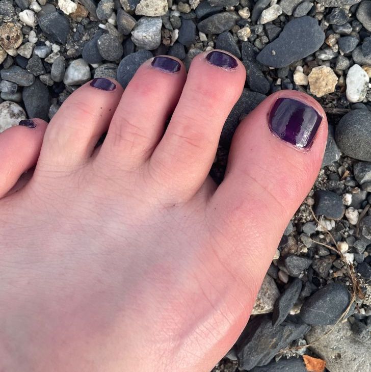 Like a snack is a dark purple and is very similar to a slightly lighter version of OPI Lincoln Park in the Dark. It's a good color, but I was hoping for a more vibrant purple from the pictures. I also looked up this color on Kiara Sky's Facebook page and the pictures they posted of it made it look like a very vibrant purple, which this is definitely not. This is 2 coats in the picture. Applied fine and lasted fine. Taking one star off because the color wasn't what Kiara Sky depicted and now I'm stuck with it.