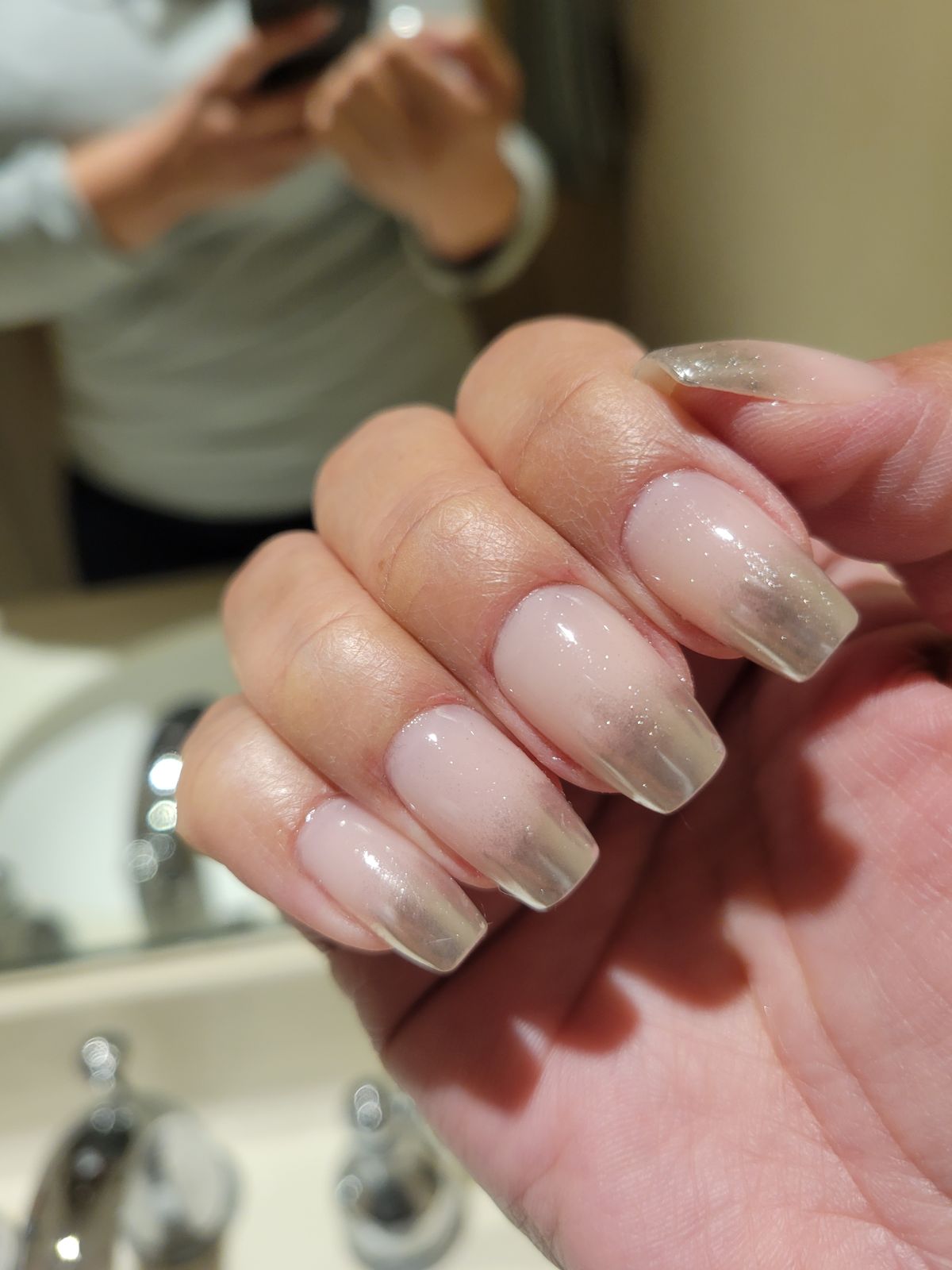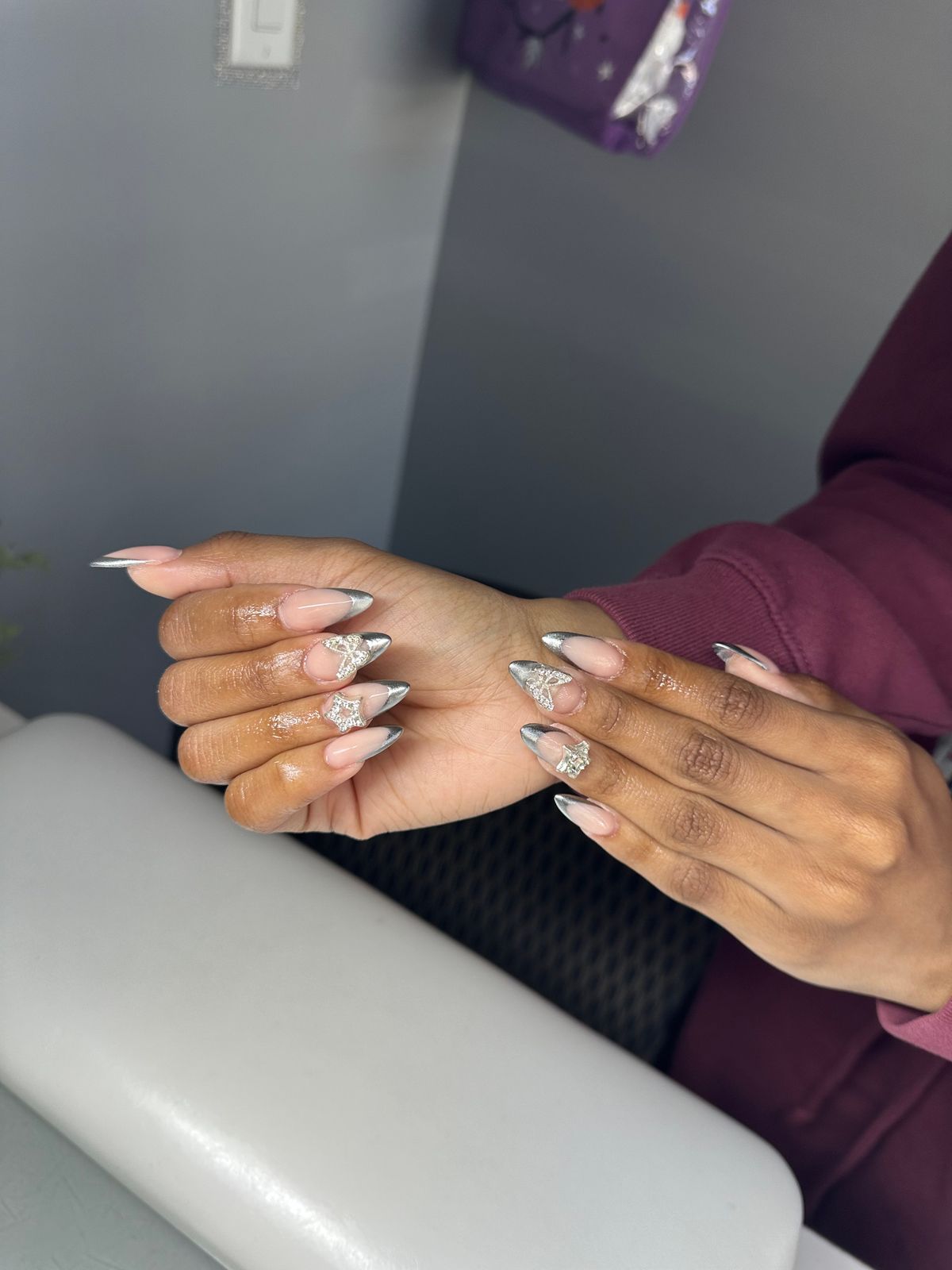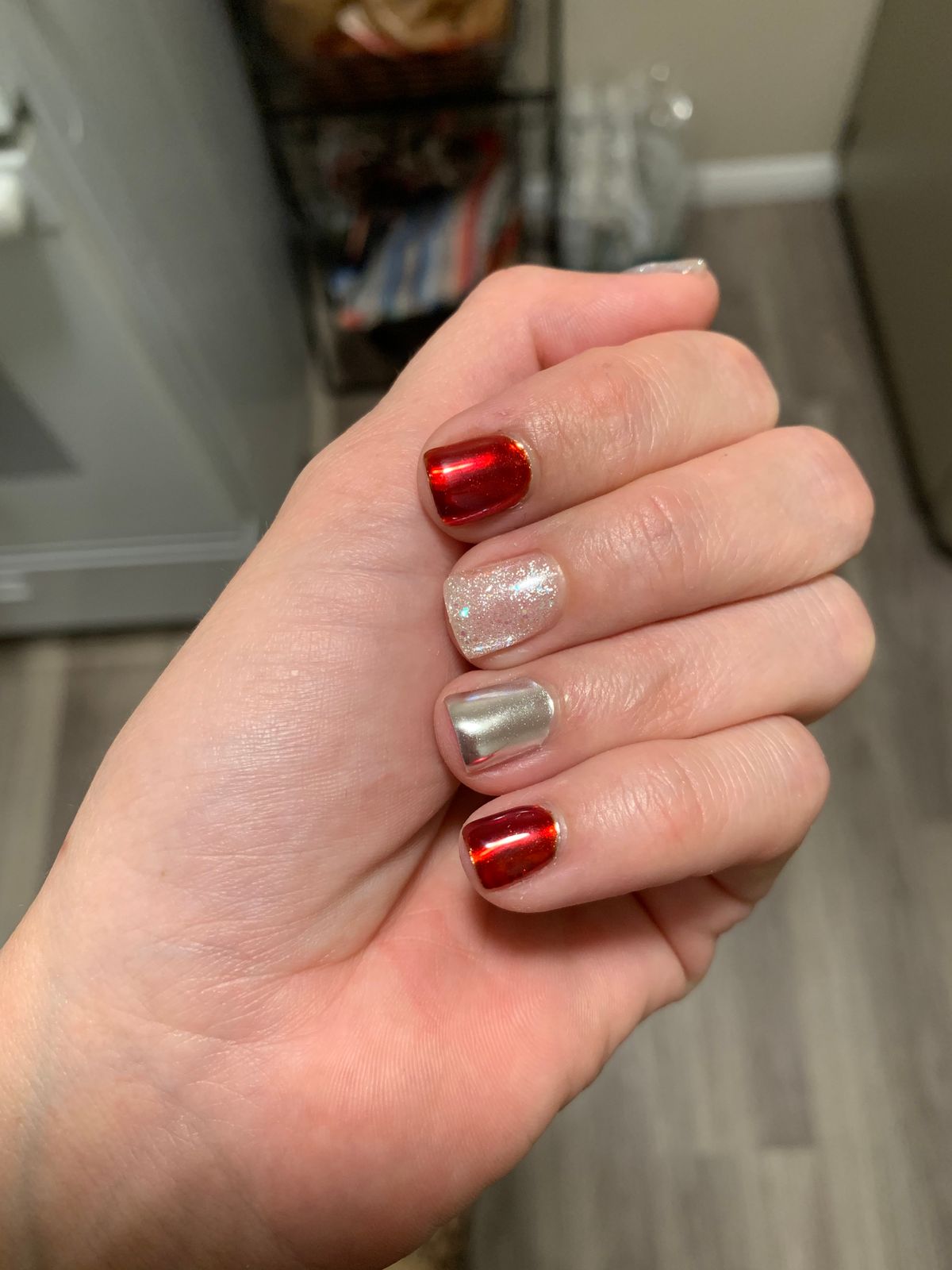 This chrome is so easy and cute! It apply with no struggle and leaves a glittery shimmer to the chrome. It’s so cute and shiny too and one coat chrome only.