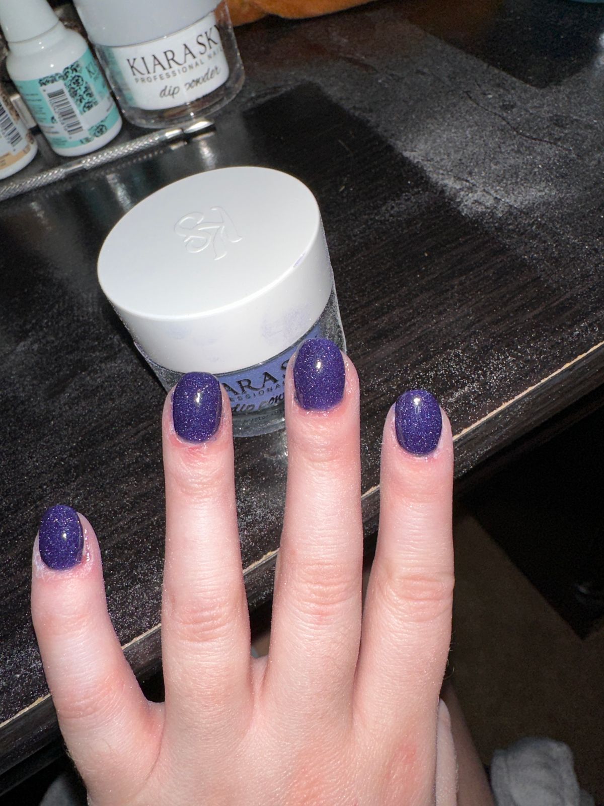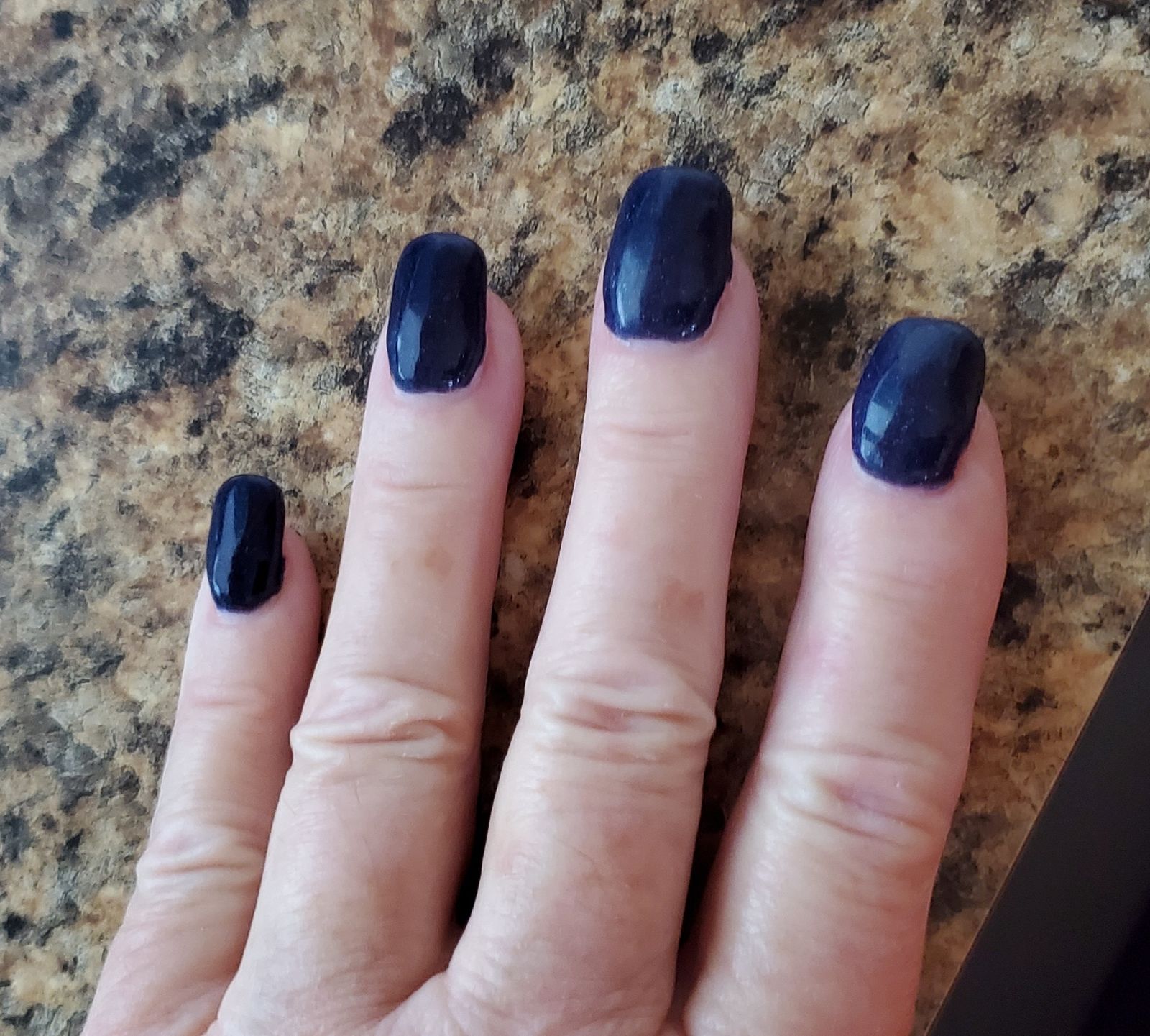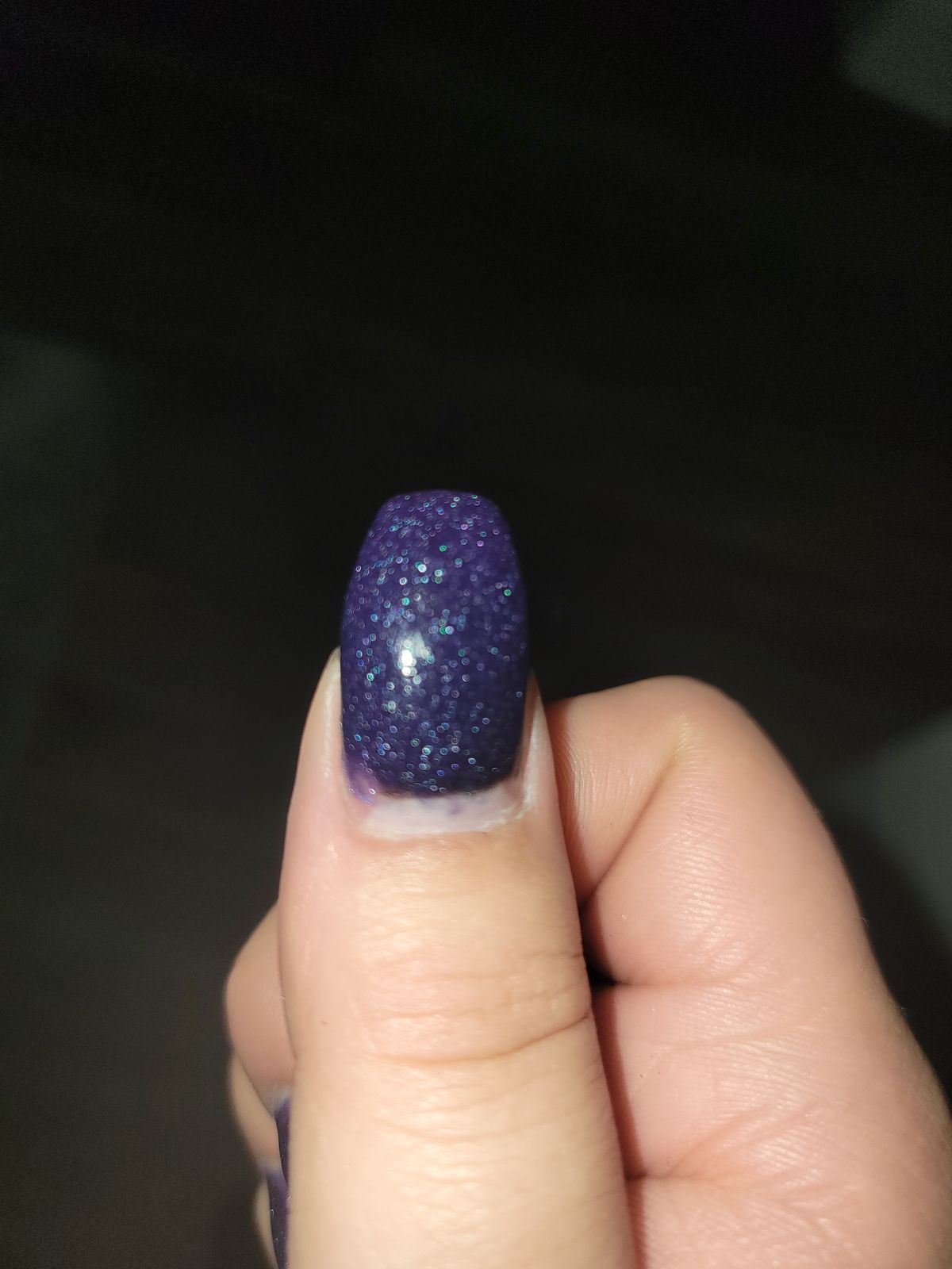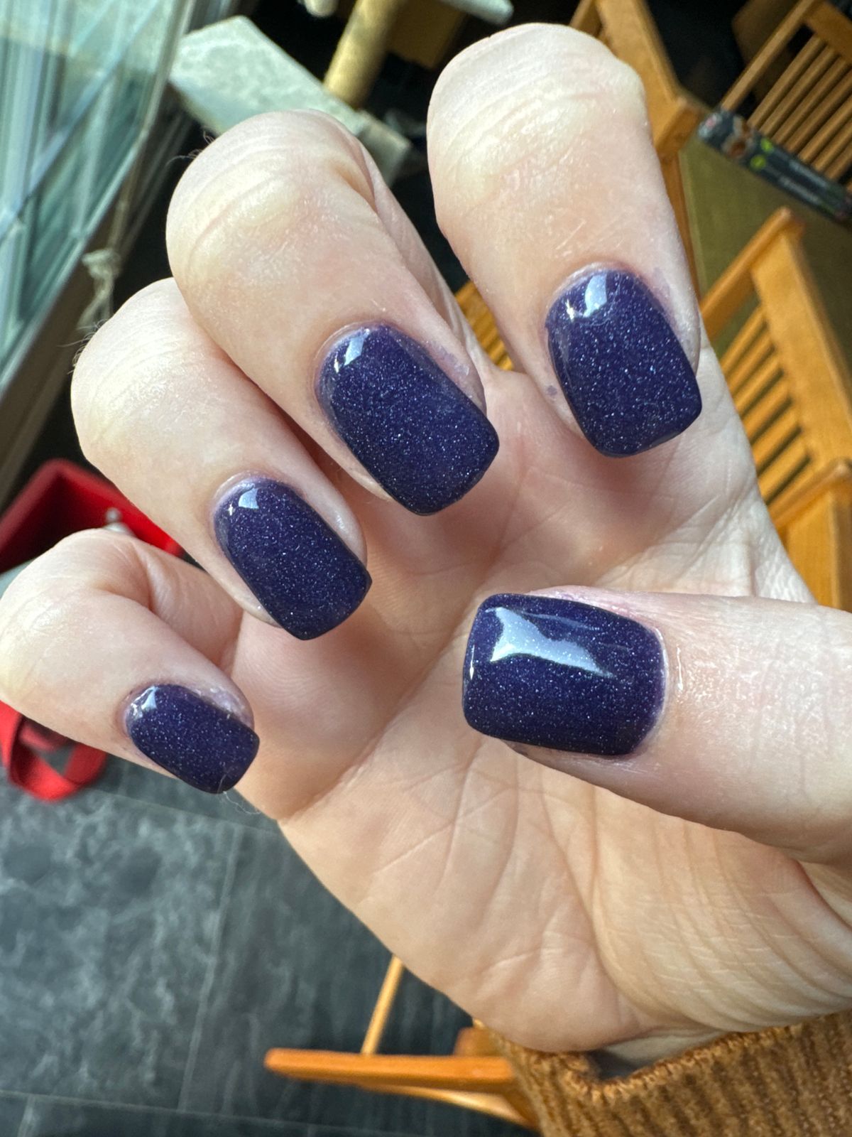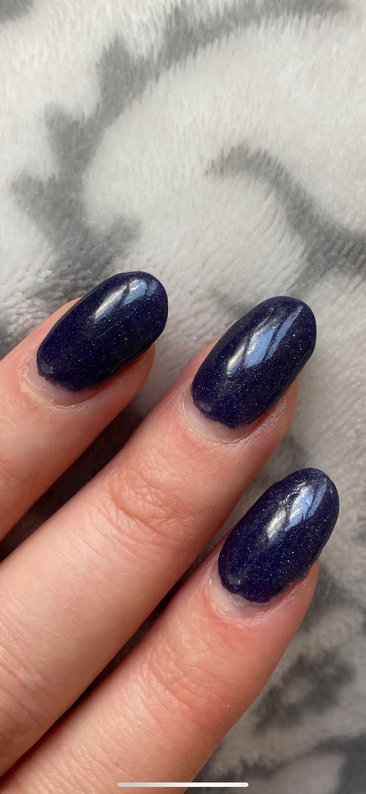 While the color is in fact gorgeous, it is not navy. It’s purple in the pot and it’s purple on the nail. It is very dark so it could come across at blue but it’s is definitely purple with a hint of blue not navy with a hint of teal as the photos imply. Nail artists love this brand too. They always thank me for bringing in nice powder