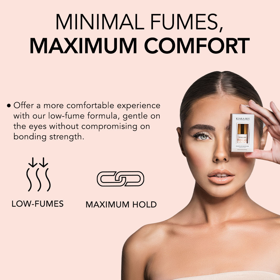 Unlock unmatched retention with Kiara Sky's Pro Lash Glue. Designed for elite lash artists, our adhesive revolutionizes lash retention, promising up to 8 weeks of unmatched longevity. Whether you're working in low or high humidity, our wide-range formula effortlessly adapts, freeing you from environmental constraints and speeding up your lashing process. With a drying time that’s lightning-fast, and a low viscosity that glides onto the lash, it further enhances your efficiency and speed, while providing your clients with the best retention they've ever experienced. With each application, our Pro Lash Glue will make bonding a breeze, will keep your fans perfectly open and will lay the groundwork for lash extensions with unmatched retention.