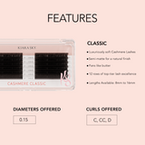 Introducing the Kiara Sky Classic Cashmere Lashes, the pinnacle of lash artistry. Designed exclusively for lash professionals like you, these lash extensions are crafted with an impeccable 0.15 diameter, making them the ideal choice for breathtaking classic and hybrid sets. Featuring a semi-matte finish and a range of curls, they effortlessly blend to exude a naturally captivating look. Created from the finest Korean PBT, they're not only cruelty-free but also mirror the luxurious softness of natural cashmere. With an easy peel-off design, our thin adhesive strip and foil backing ensure a seamless application and pristine workspace every time. Dive into 12 rows of top-tier lash excellence and experience the Kiara Sky difference. When every detail matters, trust in a legacy of unmatched quality.
