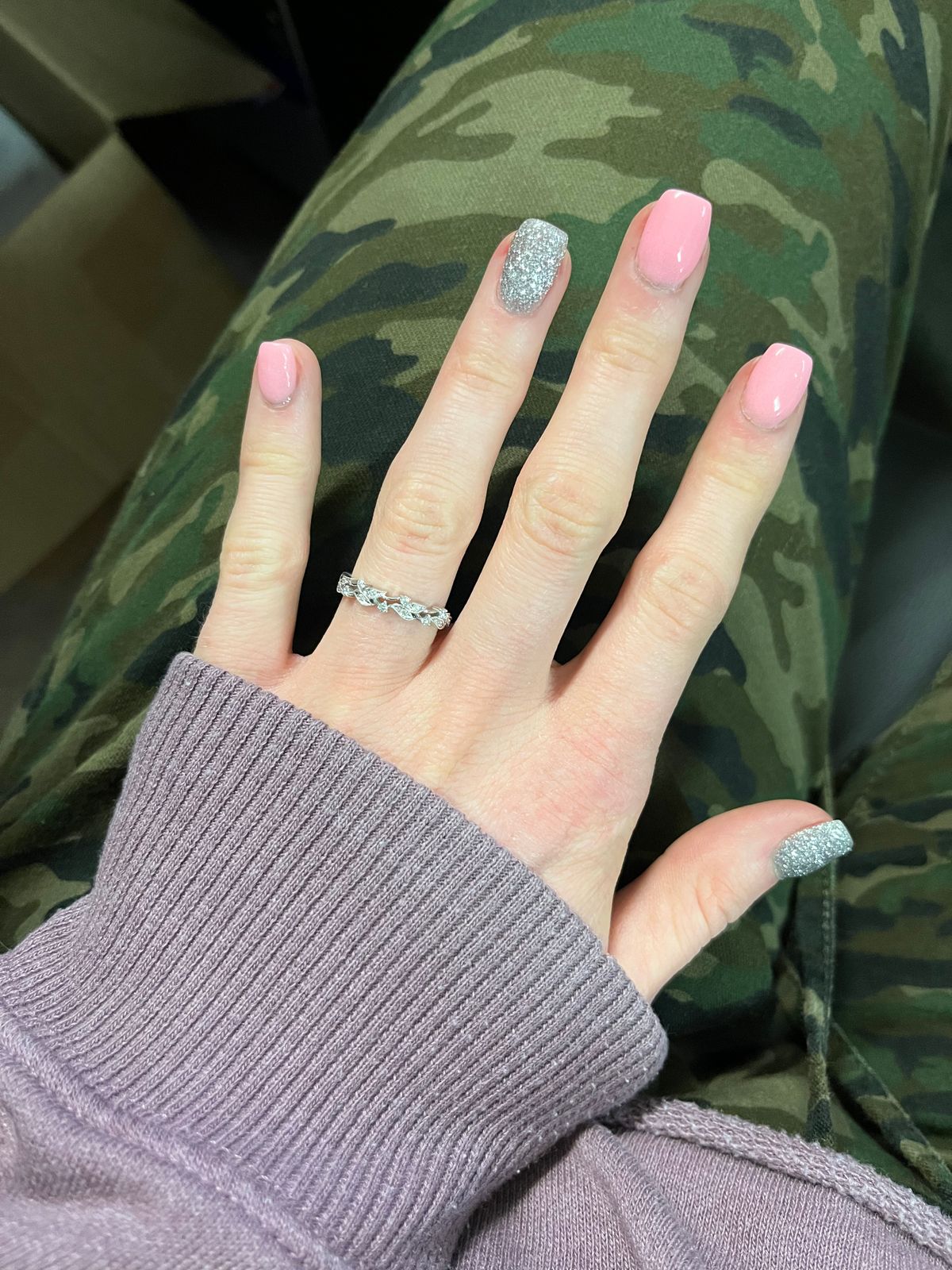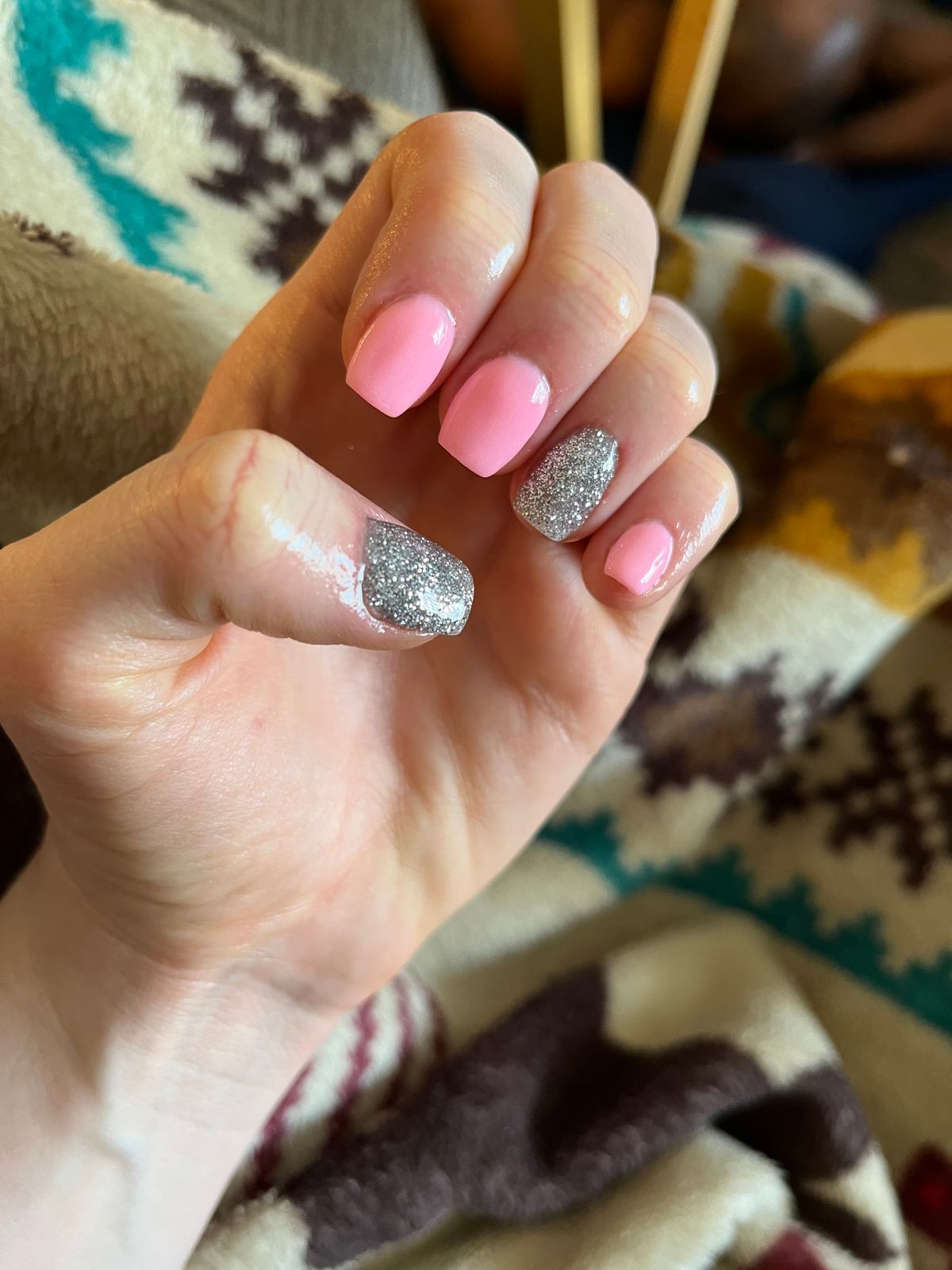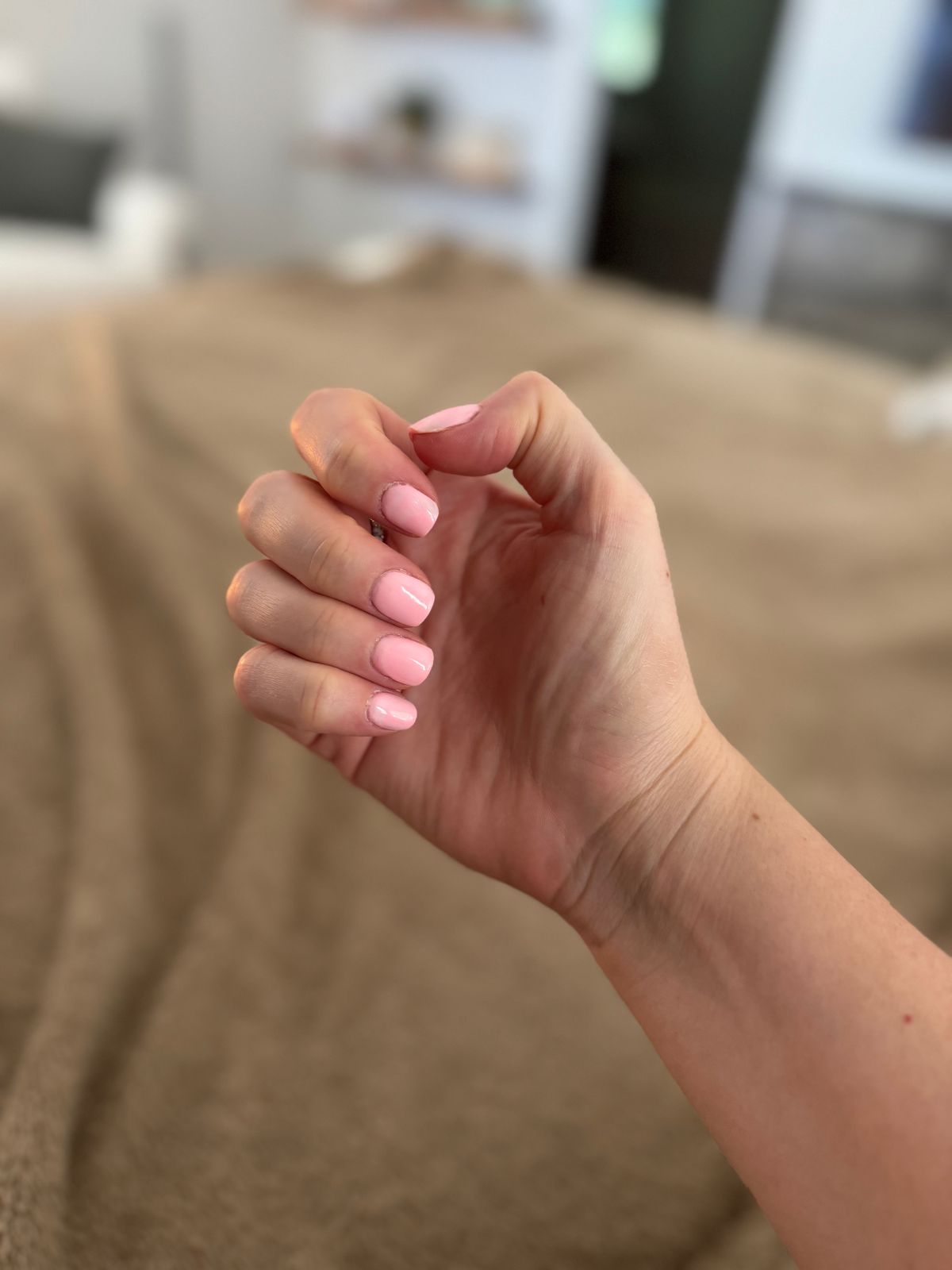 I am new to dip powder nails and this was my first time trying them! It’s definitely a learning curve. This pink is so pretty! It’s lighter than I expected but I still love how soft it is!