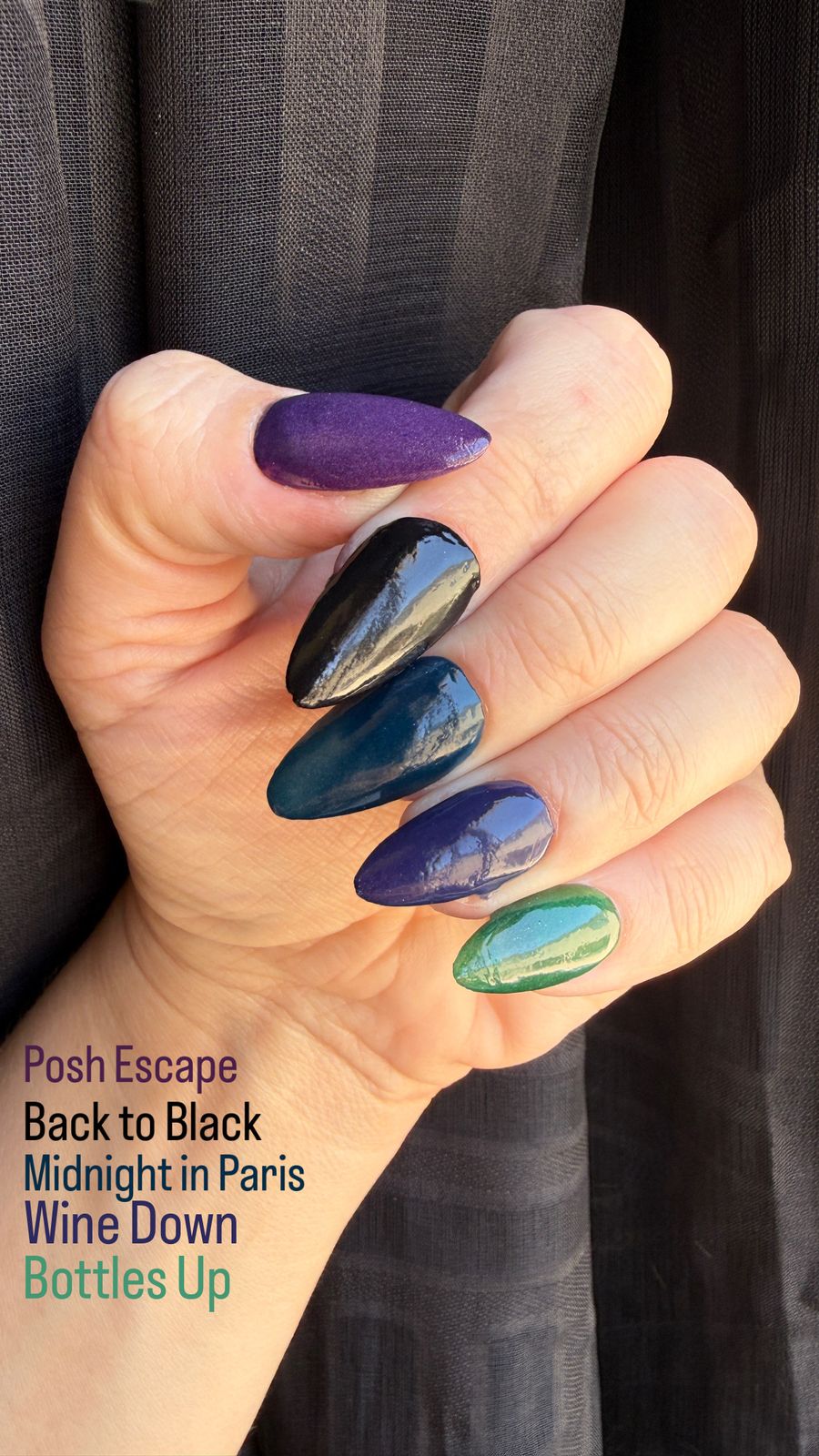 It's almost navy but quite-- prettier than that, IMO. A little richer, dark and mature. Featured on my ring finger.