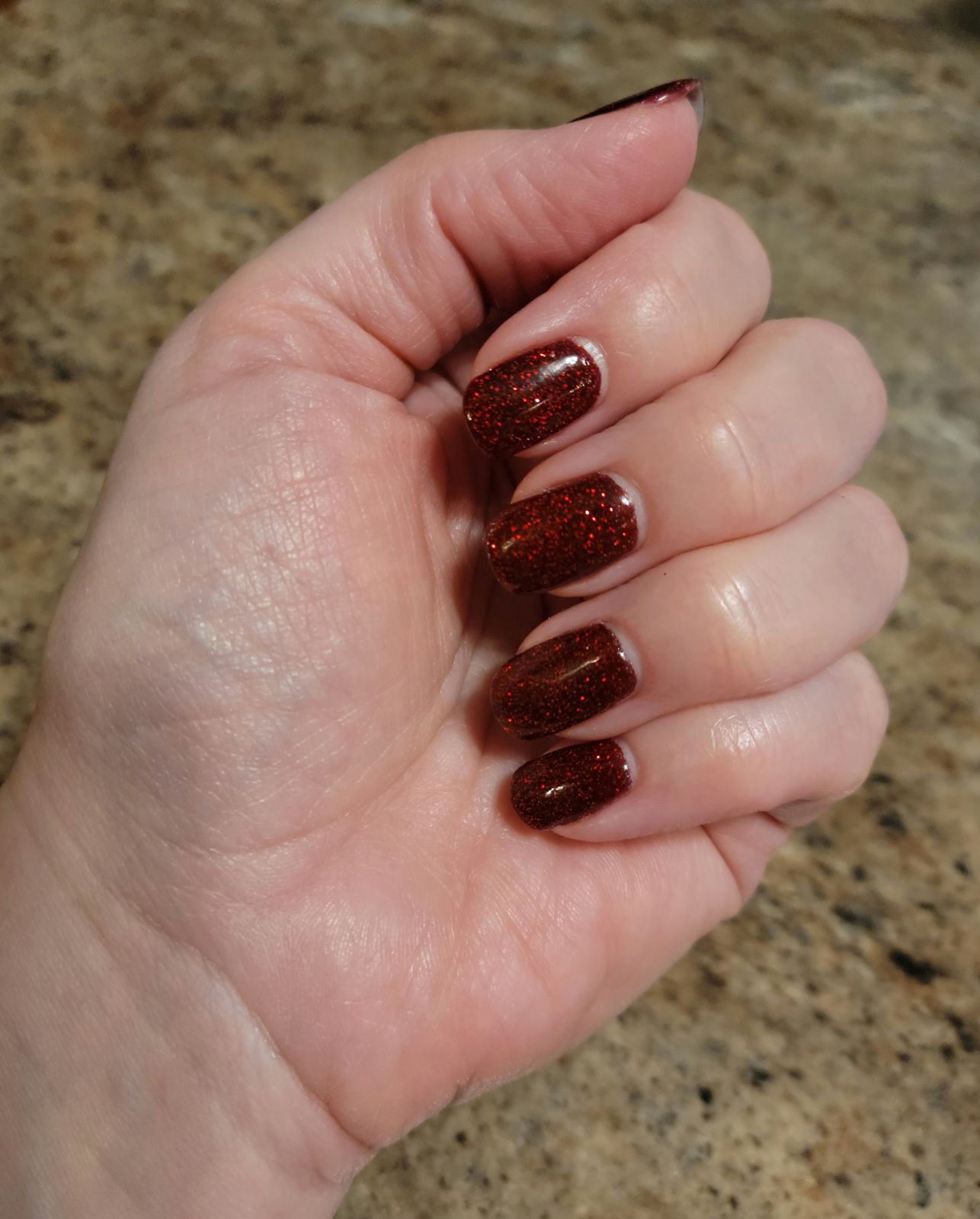 I love, love, love the color & sparkle in I'm Bossy! My go to polish color is red & this takes it to a whole new level! The dip powder in the photo was applied 6 days ago & looks as good as it did on day 1!
