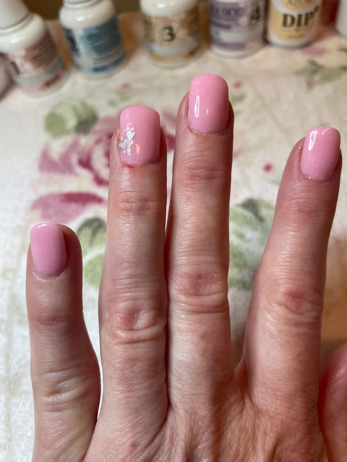 This is not as cool light pink as the photos show, but it is still a very cute, light pink with a slight peachy tone. As the other reviews said, this has micro-shimmers which are so pretty. I will say that I didn’t like it at first but it definitely grew on me. Relieved that I could wear this again.