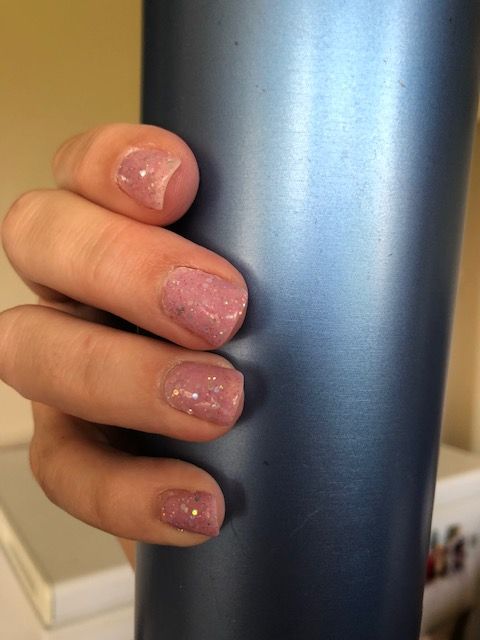 90’s baby is a very pretty color. It is a very light pink with bug sparkles. It’s subtle, but very cute!