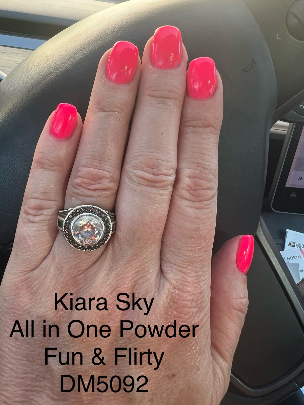 "Introducing an innovative new formula with versatility and consistency in mind. Kiara Sky Nails’ NEW All-in-One Collection features over 100 multi-functional powders that can be used as dip powder, acrylic, 3D designs, sugar effects, and more, all in one jar! This highly pigmented and smooth formula is easy to work with and provides a strong, smooth, and long-lasting nail enhancement."