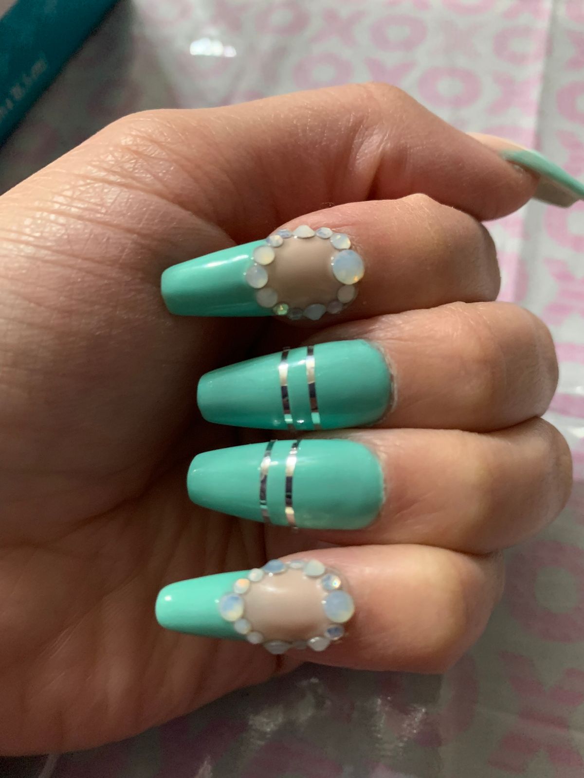 Beautiful mint green. Perfect shade for summer. I applied 2-3 coats of polish. I used ‘Cream Of The Crop’ polish for the base color on the three French tip nails. 5/5