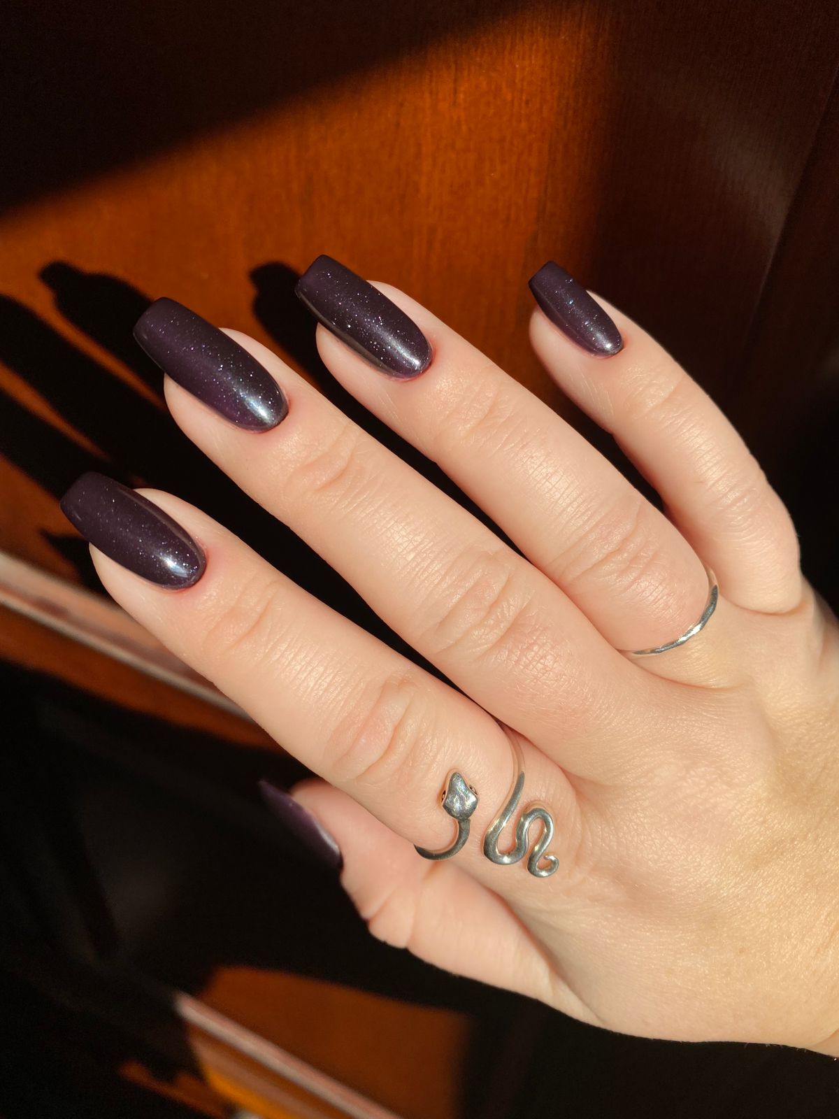 This color is amazing, It’s a beautiful dark purple with bluish green shimmer that’s very subtle, but when the sun hits it’s gorgeous! Goes on easy in just 2 coats. Would highly recommend this color!