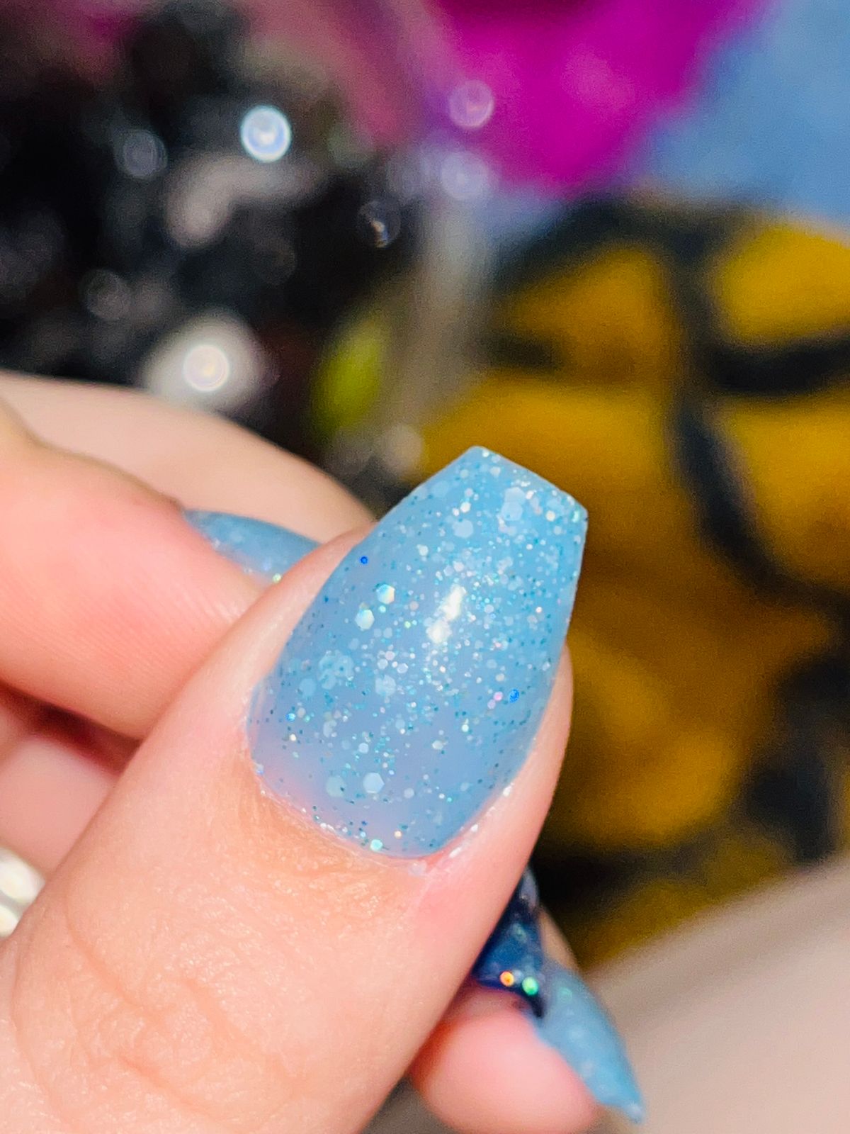 Love the color the glitery touch to it gives me frosty, elsa, frozen vibes