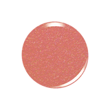 Looks beautiful but it's a slightly darker shade of peach then the swatch online. The glitters on this are super consistent when used as a dip powder really love this color