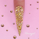 "Introducing Kiara Sky Nails Bling It On Collection! A dazzling collection featuring 12 ultra-sparkly rhinestones options to add a touch of glam to your next mani! These stones come in an assortment of sizes and are perfectly designed to take your nail art game to the next level. Use them on top of dip powder, acrylic, gel, or Gelly Tips!"