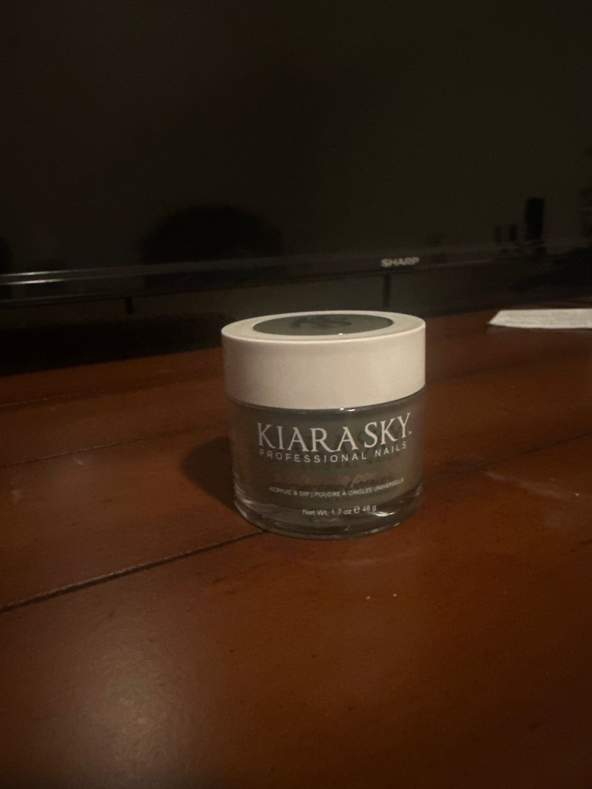 Kiara Sky captured my favorite color, added a touch of glitter, and made it an easy-to-use product! This was my first experience using their All in one powder, and I used the dip application. It lasted for 3 weeks with no lifting or chipping. I only removed because of grown-out nails and to give my nails a breather. It's a beautiful elegant deep green that reminds me of a deep emerald you could get lost in.