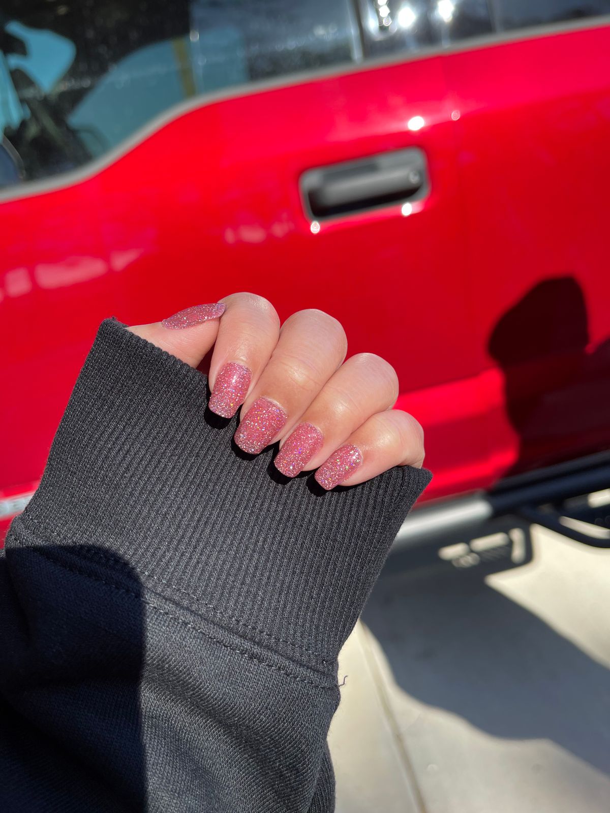 This pink, sparkly color is a must have! It shines from every angle!