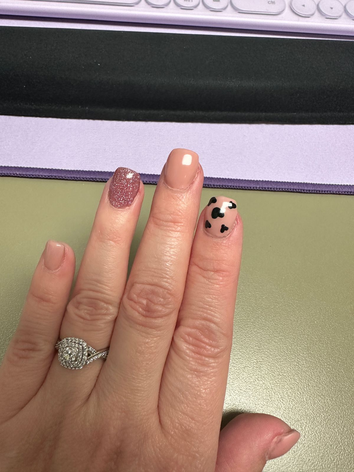 Beautiful shade but hard to work with. The glitter makes the polish hard to cover the nails evenly