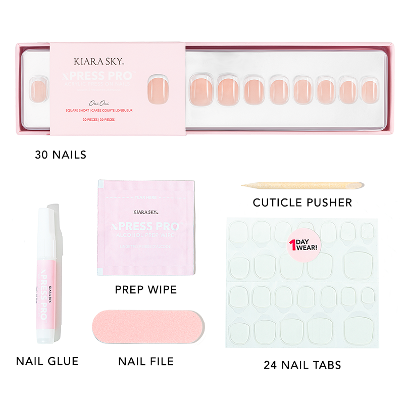 French tip nails like you've never seen before! 'Oui Oui' is the answer to your short nail prayers! We're bringing you the beauty of a classic French tip, in a short square shape to give you a "your nails but better" look. Perfect for day or night, and throughout every season, this short square nail set is made to compliment everyone! Apply with acrylic, nail glue, or tabs and get long-lasting, salon-quality nails in minutes.