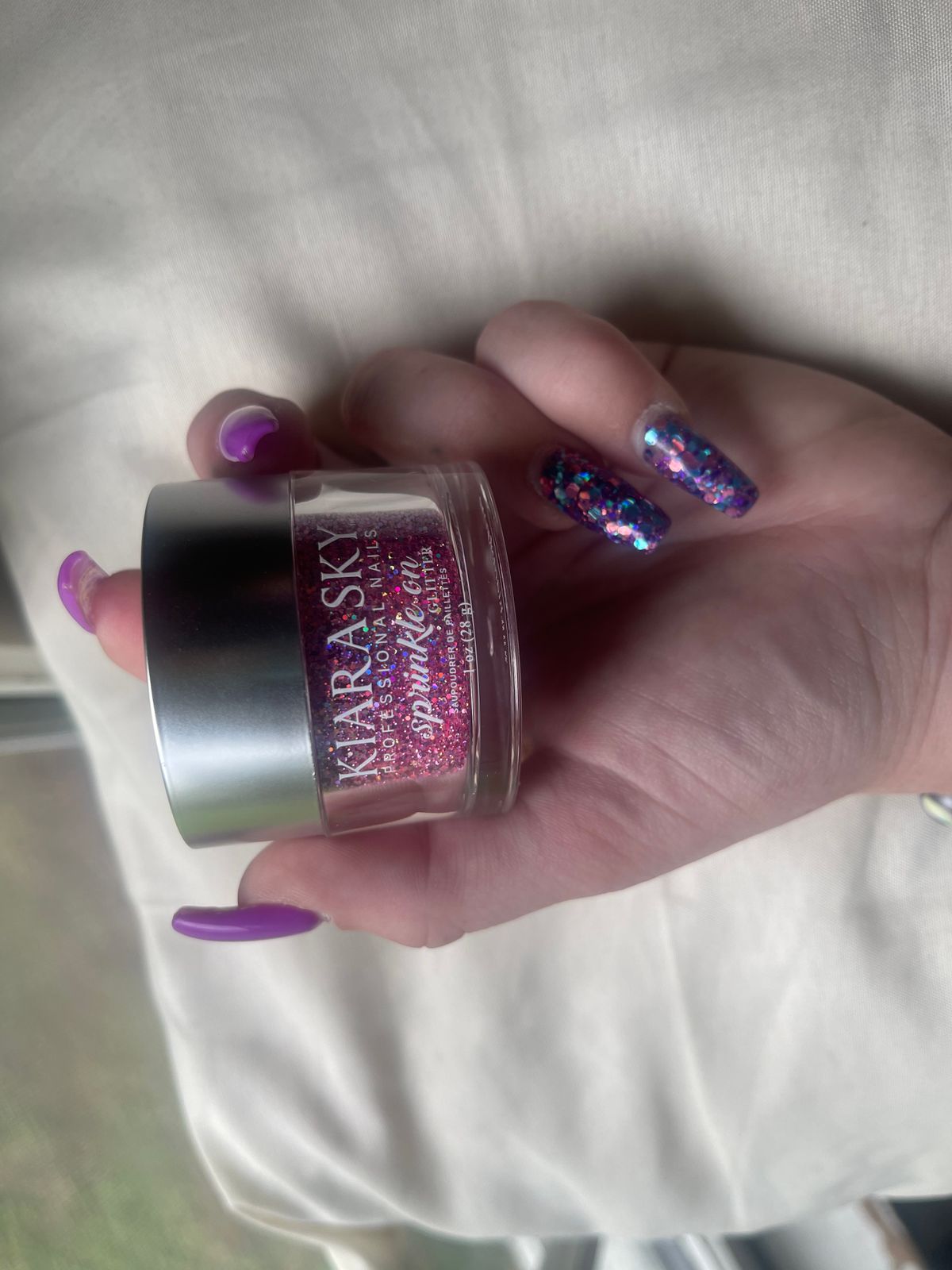 "Introducing Kiara Sky Nail’s NEW Sprinkle On Collection! Featuring 96 unique 3D glitters, so versatile and absolutely stunning! Mix with acrylic, gel polish, nail lacquer, dip powder, or simply Sprinkle On for the sparkle of your dreams! Each glitter is designed with a mix of shapes and sizes for a multi-dimensional finish! The combinations and possibilities are endless!"