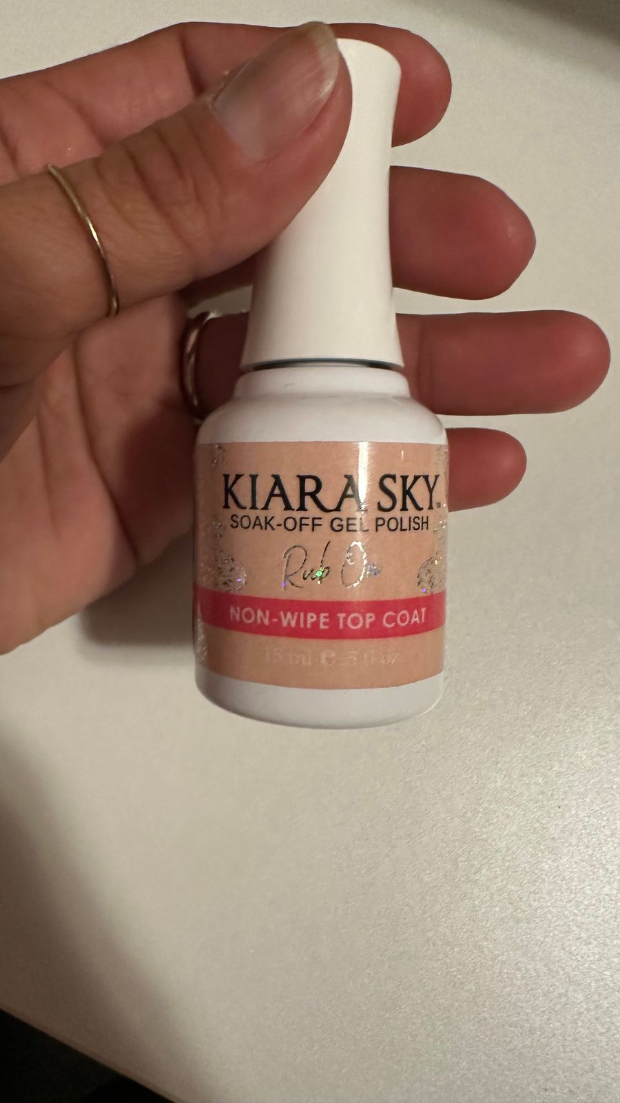 I absolutely love this topcoat. I’ve tried hundreds every brand there & this one is by far is the best I’ll tell you why. I came across it because I do a lot of chrome art designs & when Kiara, Sky came up with this one, I started using it for my Chrome ,well I had run out of the other Kiara Sky topcoats & another one from another brand that I liked well I used this topcoat as just a regular top acrylic shine & I also used it on my gel polish on a manicure & the finish is absolutely flawless. It’s a thick of viscosity. It’s kind of I can’t explain like a fluffy top coat bouncy almost not thick because I do not like it too thick either, but it has an amazing finish. I just ordered three more bottles. I’ve already used seven others before this order & I absolutely love it. This is the only top coat I use on gel manicures,color acrylics Topcoat for my chrome & on gel toe polish it’s amazing absolutely five stars.⭐️⭐️⭐️⭐️⭐️