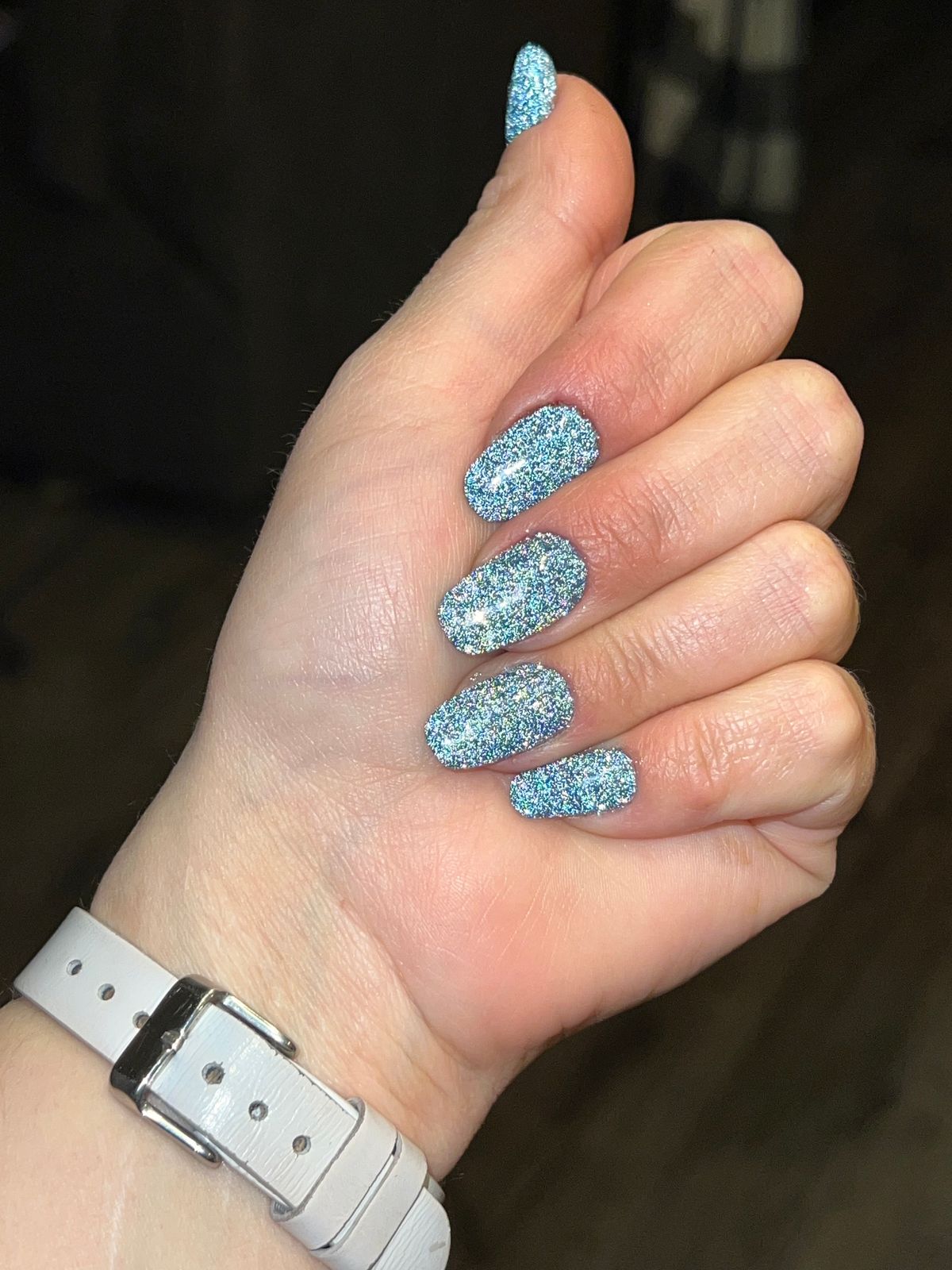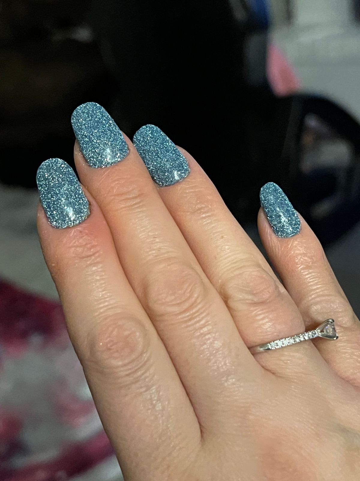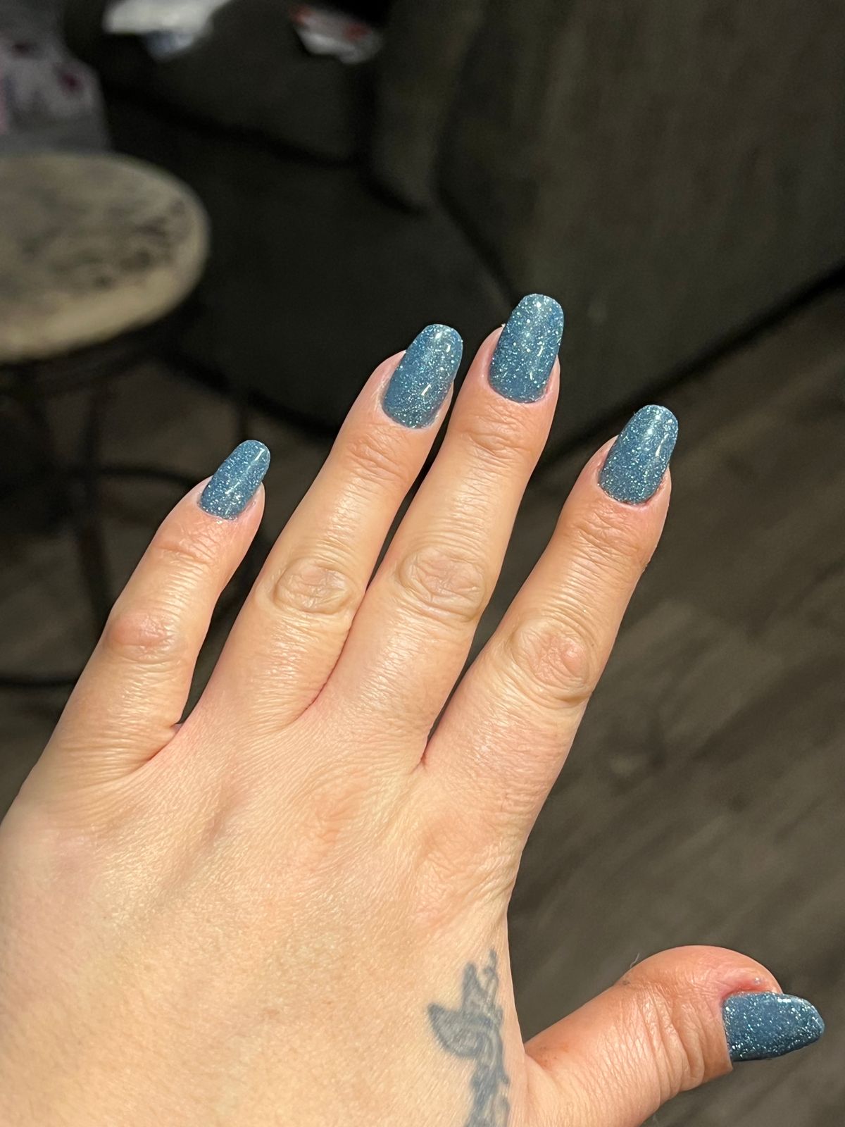 I’ve already gotten compliments on the greyish blue tone alone. It shine bright under certain lighting. I got 4 other colors of this collection so when I use those I will post pictures of those as well. Excuse my pinky it got broken and it never healed correctly.