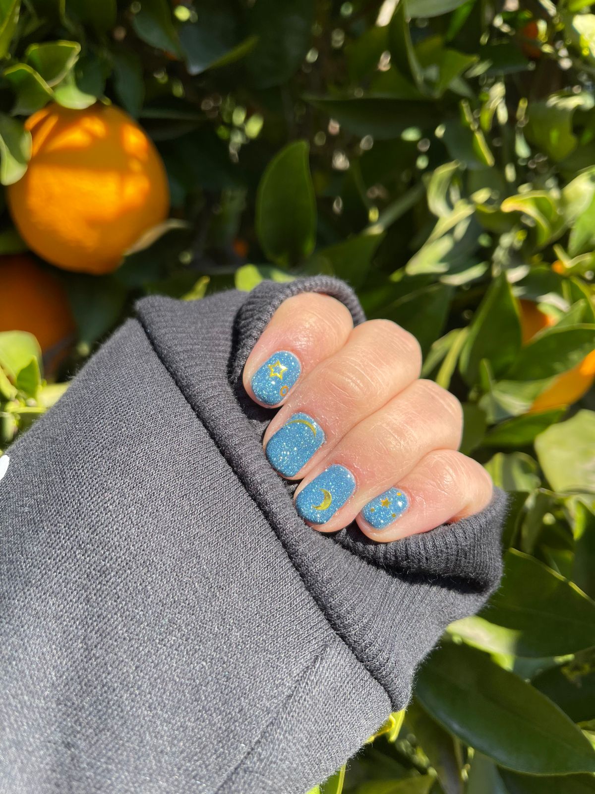 If you could see all of the stars in the sky during the day, this is what it would look like! This stunningly sparkly blue shade creates a cosmic constellation effect during the day, and a reflective show-stopping look when you turn the flash on!