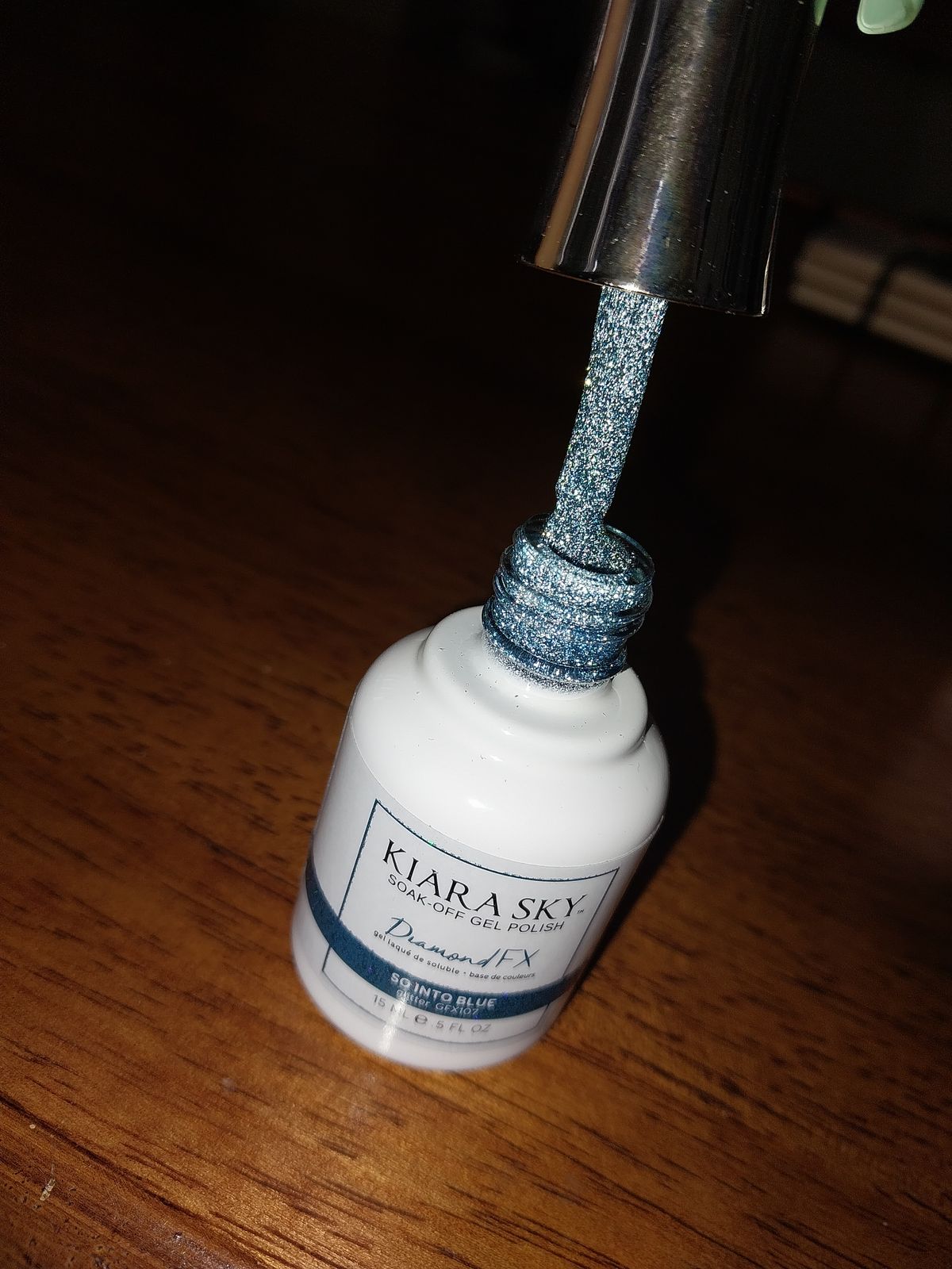 I absolutely love this color! I want to be completely honest though, when I saw the video of the DiamondFX gel polish collection on Kiara Sky’s site I thought there is no way it would look as good in person as it did on the site, but I was pleasantly surprised because they look even more stunning in person then they did on the site. I ordered the entire collection and I’m in love with every color, the color “so into blue” had originally came to me with the brush messed up but all I had to do was reach out to customer service via email, they responded super quickly and had a replacement on its way to me, I received it a few days later and it was perfect. I will definitely continue to purchase from Kiara Sky and tell everyone about them and how amazing their products are.