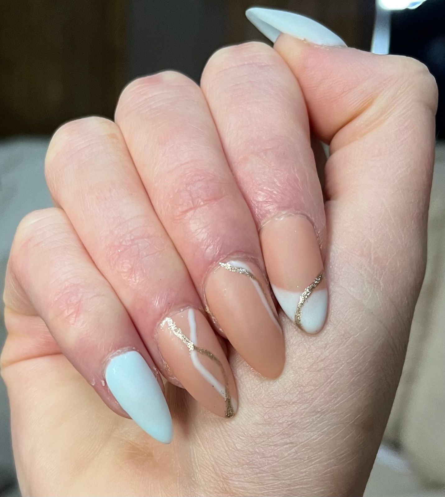 I LOVE this color!! It’s the perfect baby blue polish for spring! It looks great as a french tip but also as a solid nail. Definitely recommend! 💯 👌 Other color as shown in photo is Kiara’s polish in Bare with Me. ✨
