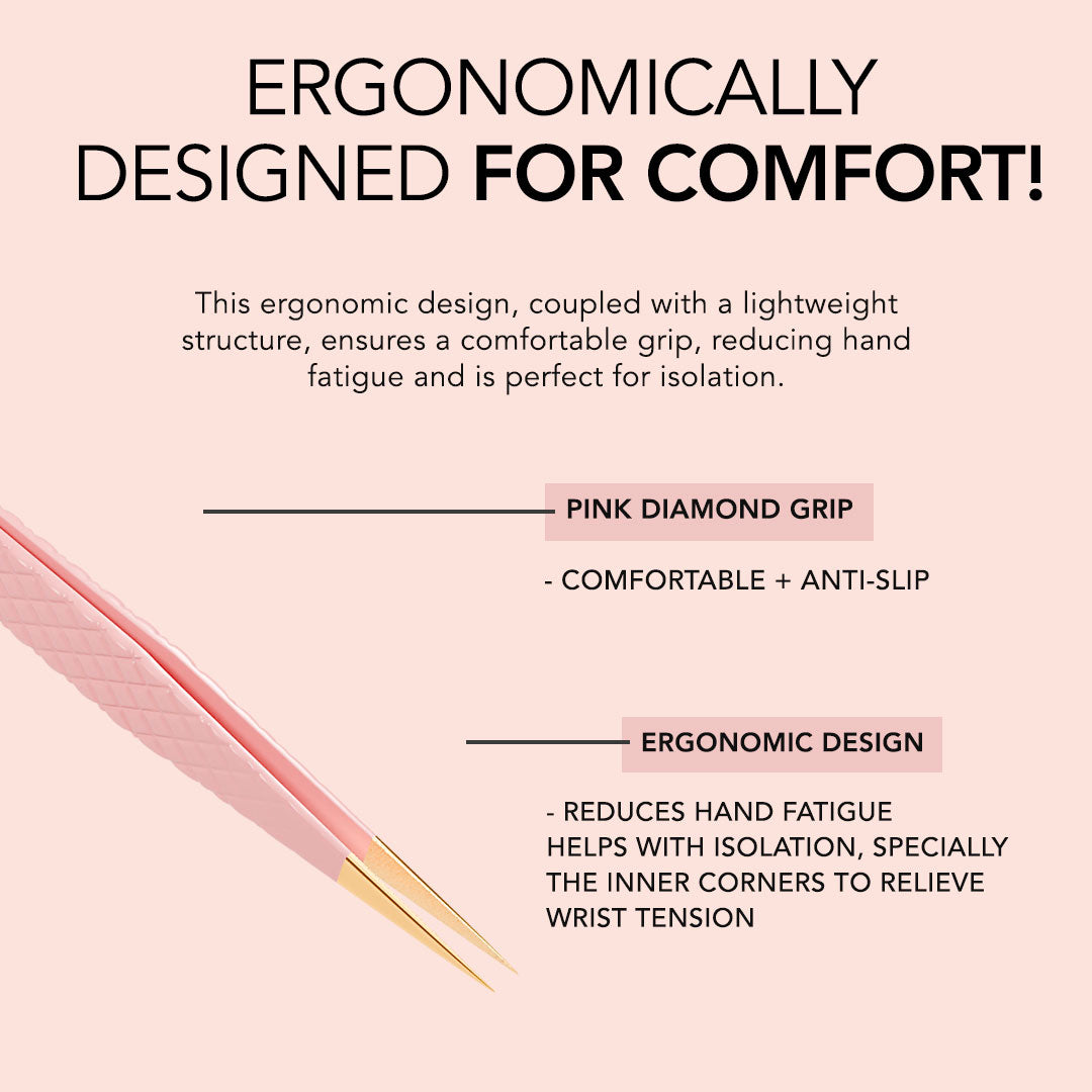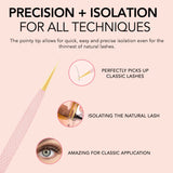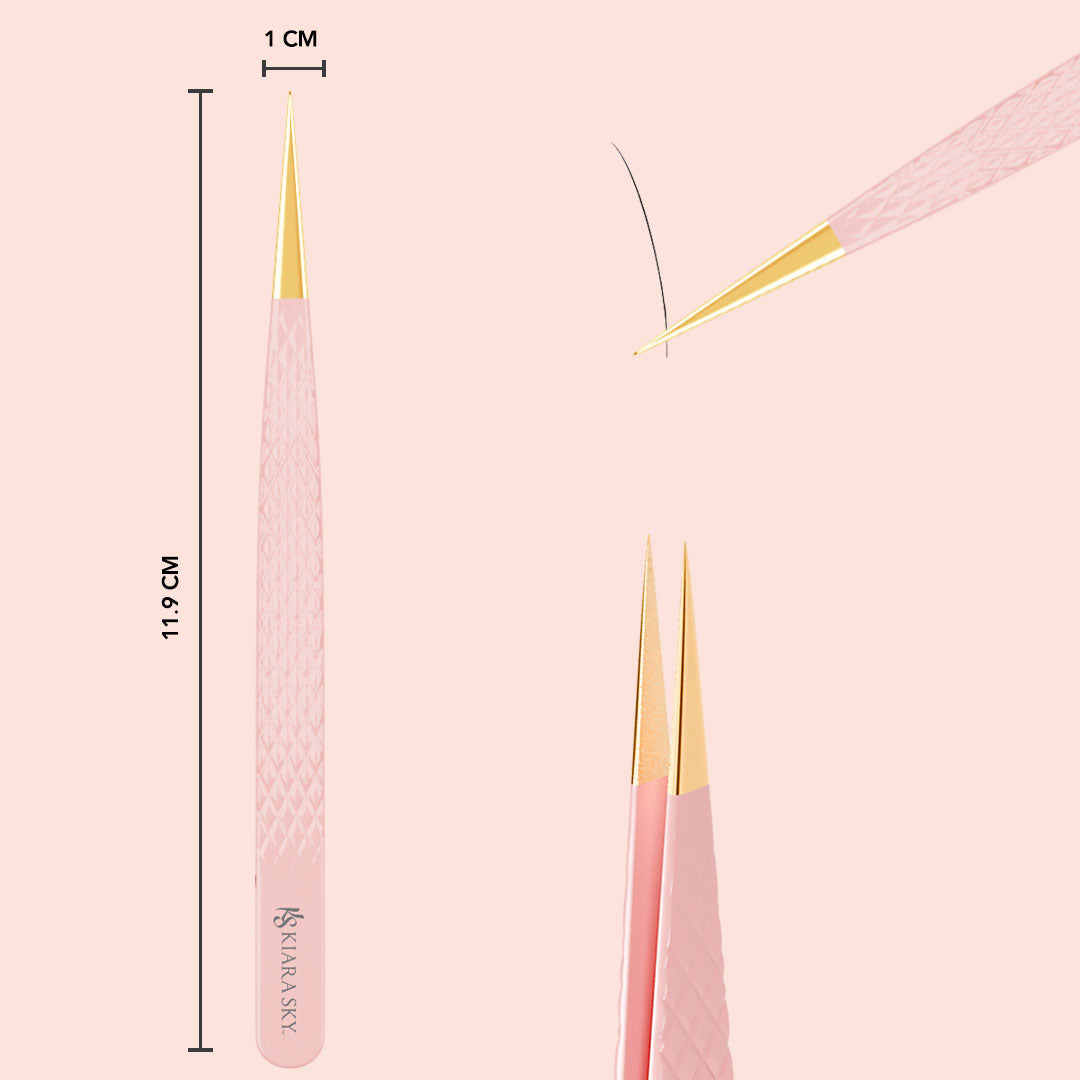 Straight to the point, *wink* Kiara Sky’s straight tweezers are perfect for isolating the natural lash. The pointy tip allows for quick, easy and precise isolation even for the thinnest of natural lashes. These handy little tweezers are versatile, they’re also amazing for classic application.