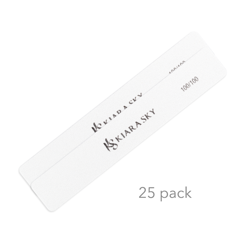 Shape & File flawlessly! These 100 grit nail files are slightly coarse and perfect for all your nail needs throughout your nail set! Use these Kiara Sky nail files to perfectly shape the sidewalls and free edge of your nails, reshape or shorten nail extensions, and remove product for quick and easy soak-off removal! Create perfectly sculpted square, coffin, and stiletto nail shapes with these rectangle-shaped nail files; great for filing the free edge, sidewalls, and lower arch of the nail!
