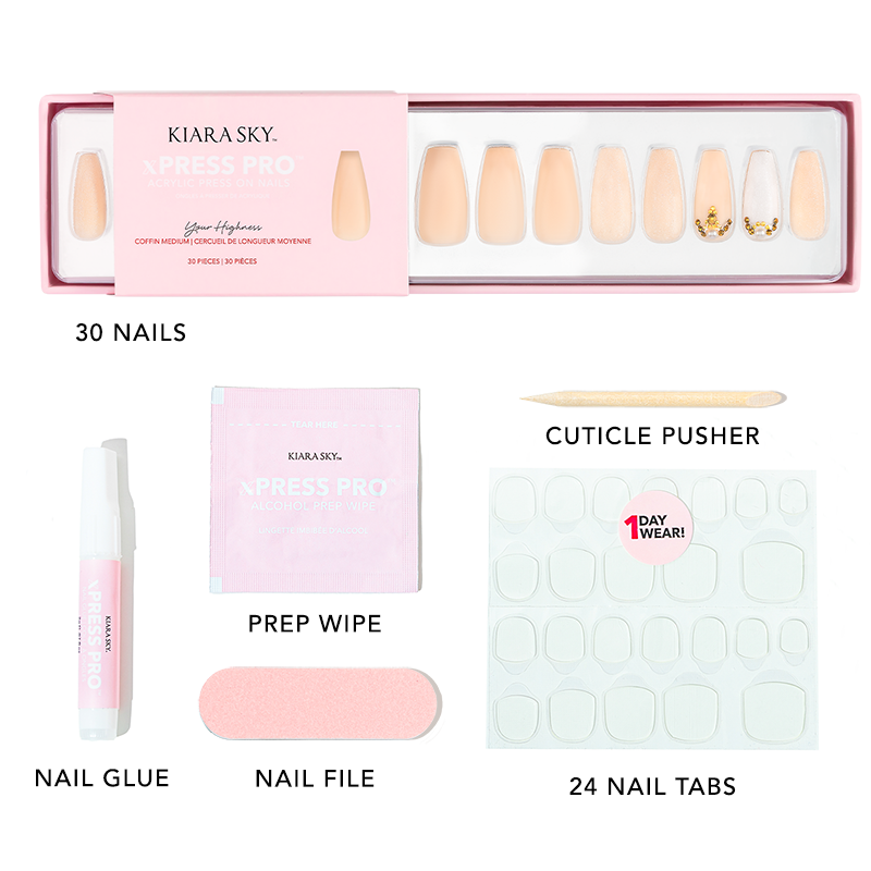 "Ditch the plastic! Kiara Sky’s xPress Pro Press-on Nails are 100% acrylic and 100% fabulous! Designed to be quick and convenient, our acrylic nails can be applied in 3 easy ways! Get a 100% instant acrylic manicure that lasts 3+ weeks when you apply them with acrylic, 2 weeks when you wear them with nail glue, or rock them for the weekend with nail tabs! With a variety of designs to choose from, you are only minutes away from perfect, salon-quality acrylic nails!"